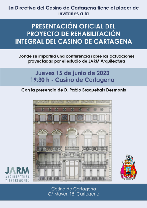La junta directiva del histórico inmueble de la calle Mayor de Cartagena organiza el jueves 15 de junio (19.30 horas) el acto de presentación de las actuaciones proyectadas por el estudio JARM Arquitectura. Asistirá Pablo Braquehais Desmonts, director general de Patrimonio Cultural de la Comunidad Autónoma.