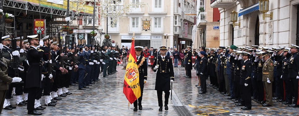 Además, una compañía mixta de honores ha realizado un desfile militar frente al edificio de Capitanía General. La Fuerza estaba constituida por una escuadra de gastadores y una banda de música, cornetas y tambores del Tercio de Levante de la Infantería de Marina, una sección del Regimiento de Artillería Antiaérea RAAA-73 del Ejército de Tierra, una sección del Ejército del Aire y del Espacio procedente de la Academia General del Aire, una sección de la Armada compuesta por personal del Arsenal de Cartagena, Fuerza de Acción Marítima, Flotilla de Submarinos y de la Fuerza de Medidas Contra Minas, y una sección de la Guardia Civil de la 5ª Zona.