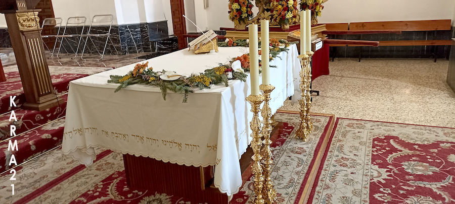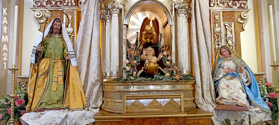 También, en el altar, hay un niño Jesús con más de ocho décadas de antigüedad y se han construido unos grandes portavelas metálicos de color dorado a partir de una antigua reja del inmueble.