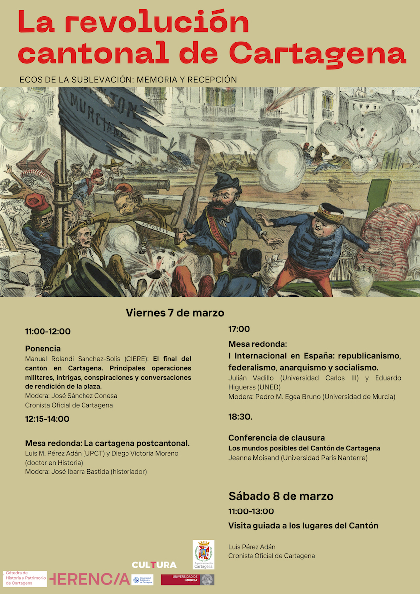 Cartagena albergará el II Congreso Internacional sobre la Revolución Cantonal los días 6, 7 y 8 de marzo gracias al impulso del Ayuntamiento, la Universidad de Murcia y la Universidad Politécnica de Cartagena. El acceso a las distintas charlas y ponencias es libre hasta completar aforo, sin necesidad de inscripción previa. Todas ellas se desarrollan en el salón de actos Isaac Peral de la Facultad de Ciencias de la Empresa de la UPCT, antiguo CIM.