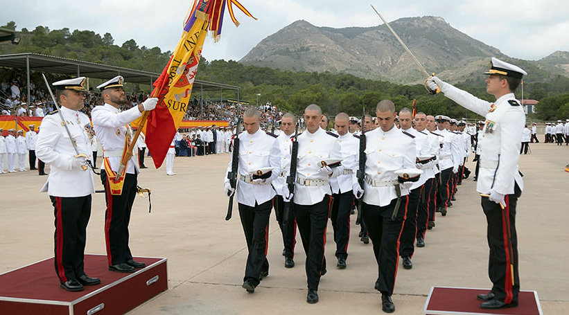 La Escuela de Infantería de Marina celebró el solemne acto de juramento o promesa ante la bandera de España de los soldados del primer ciclo de 2024. El acto fue presidido por el almirante-jefe de Personal de la Armada, Pedro Luis de la Puente García-Ganges.