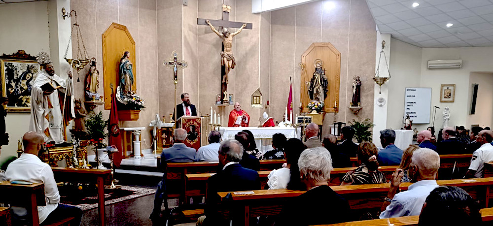 La parroquia del barrio cartagenero que lleva el nombre del patrona ha acogido una eucaristía, a la que se han sumado fieles y autoridades y en la que se bendijeron el nuevo hábito del santo y una cruz de Caravaca, que se llevará en expedición a la ermita del Mulhacén.