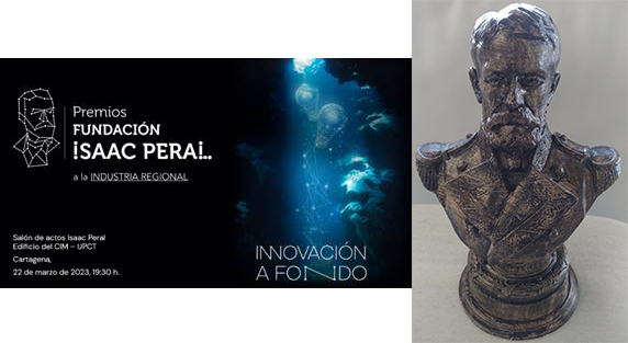 El jurado ha decidido quiénes son los destinatarios de la primera edición de sus galardones, que se entregarán el 22 de marzo en una gala que acogerá la Facultad de Ciencias de la Empresa: 'Empresa del año': Himoinsa SL / 'Investigación': Doctor Francisco Cavas Martínez (UPCT) / 'Trayectoria empresarial': José Martínez Nieto, presidente y fundador de la empresa que lleva sus apellidos / 'Premio Manuel Torres' al 'Proyecto innovador del año': Eversia SA. El busto que se entregará está elaborado en impresión 3D por escaneo del busto original de Isaac Peral que está en el Arsenal.