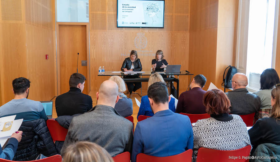 Preocupados por el empleo y la vivienda, con desafección política, deportistas, se informan a través de Internet y las redes sociales y tienen necesidad de ser escuchados; esta es la radiografía de los jóvenes de Cartagena, según el estudio encargado por el Ayuntamiento de Cartagena a la Universidad de Murcia y que ha sido presentado por la alcaldesa de Cartagena, Noelia Arroyo, y la encargada del estudio, Cristina Moreno.
