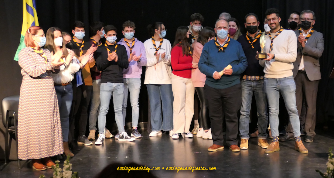 José Sánchez Conesa fue el encargado de ofrecer la semblanza del colectivo surgido en 1988, pero cuyo origen situó antes, en 1980, concretamente, cuando surgió un grupo scout auspiciado por el entonces párroco del pueblo, que fue el que fijó la emblemática pañoleta naranja y negra. “Luego, la pañoleta y sus valores pasaron a la plataforma”, dijo, destacando las numerosas actividades que llevan a cabo y el gran valor del voluntariado. Indicó que cuentan con 120 socios, “cifra tope ante la falta de local y de monitores”, apuntó.