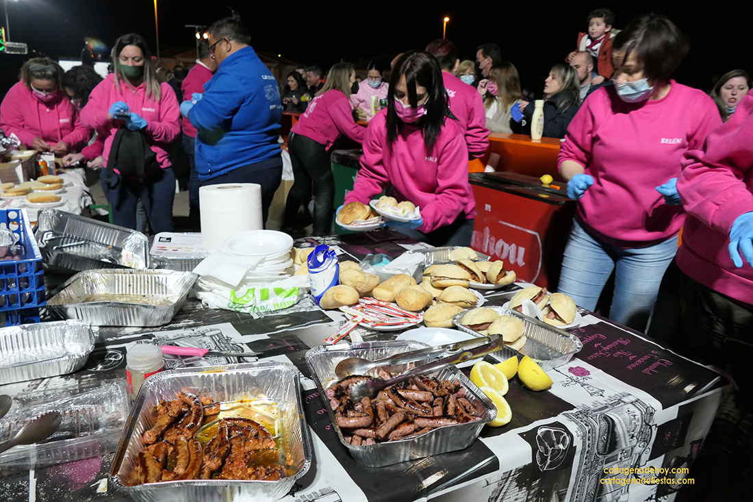La actuación comenzó sobre las nueve menos cuarto y ya para entonces el ambiente era estupendo, con muchas personas compartiendo pláticas y los productos que los peñistas iban sirviendo desde dentro de la barra a magníficos precios, pues salvo la hamburguesa, todo lo demás sólido y líquido costaba un euro. El éxito de la noche también lo refleja el dato de que se acabaron muchos productos y que hubo que ir a comprar por la misma razón.
