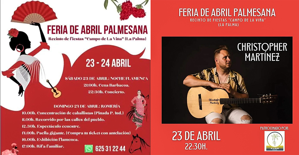El pueblo palmesano celebra su particular feria de abril esta noche, aderezado por el concierto de Chistopher Martínez, y el domingo en el campo de La viña (recinto de fiestas) tiene paella gigante y espectáculo ecuestre, además de romería, mientras que la barriada tiene hoy una noche de sevillanas y mañana acoge actividades en la plaza de María Auxiliadora con morcillada y concurso de arroces.