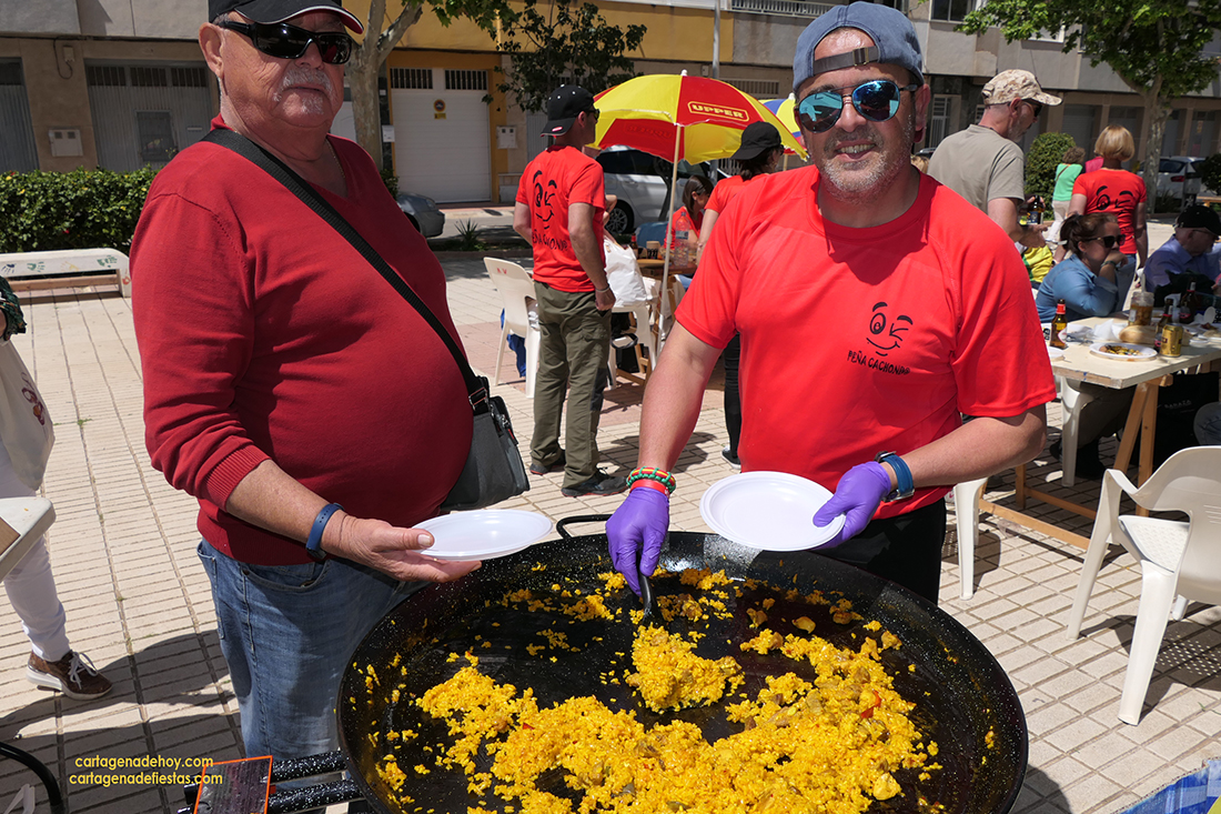 El local social de Hispanoamérica, en Cartagena Norte, acogió una noche flamenca el sábado, aderezada con barbacoa, y un domingo en el que, en una mañana muy soleada, destacó el concurso de arroces, con variadas elaboraciones que fueron degustadas por más de un centenar de personas. El jurado, integrado por seis personas, eligió sin conocer los cocineros de cada plato, dándose el caso de que Juan Miguel Molero Sánchez era el autor de los dos más votados, siendo el tercer premio para la ‘Peña cachonda’. La tarde terminó con una rifa familiar y música.