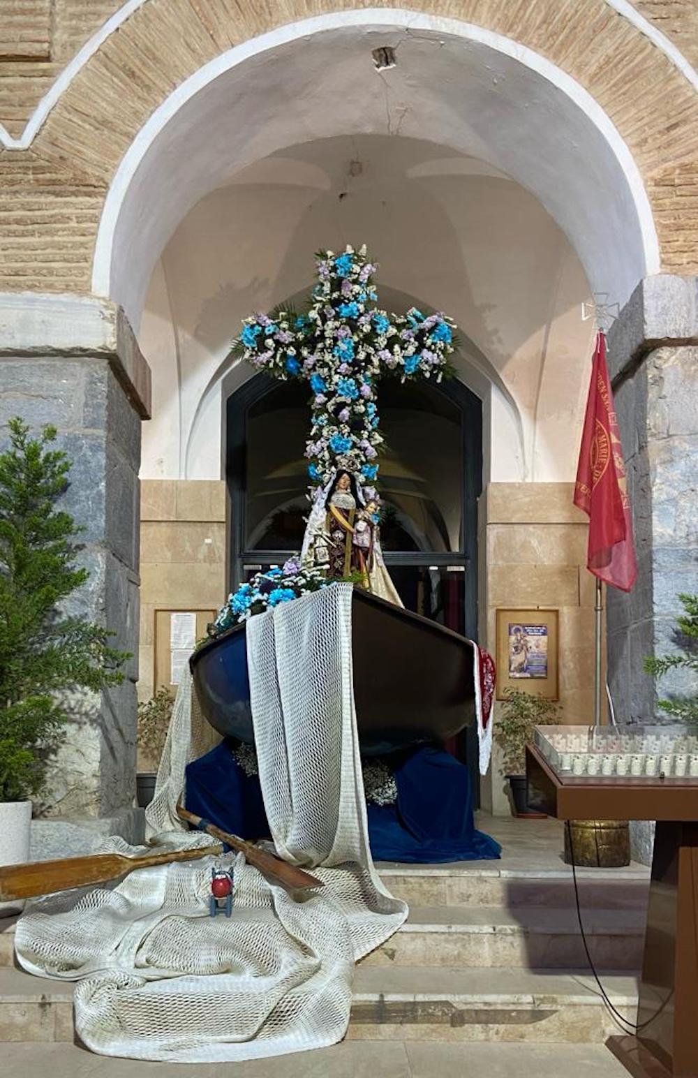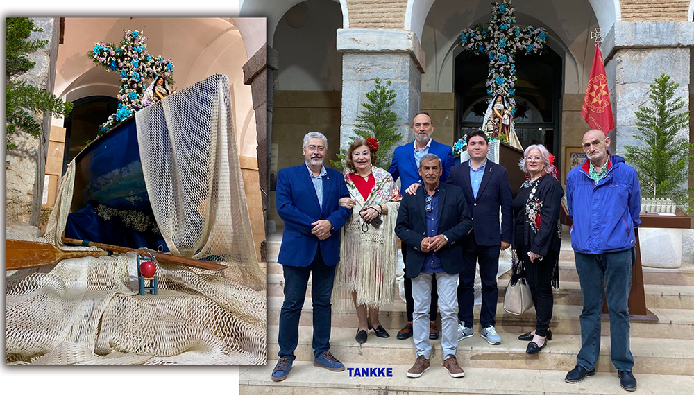 Con la celebración de la Cruz de Mayo se desveló el misterio de qué hacía una barca en la peatonal calle del centro histórico de Cartagena. El motivo es que fue en la embarcación donde la Archicofradía de Nuestra Señora del Carmen llevó a cabo el montaje de la floreada cruz, que, tras la celebración de la eucaristía, fue bendecida por el párroco.