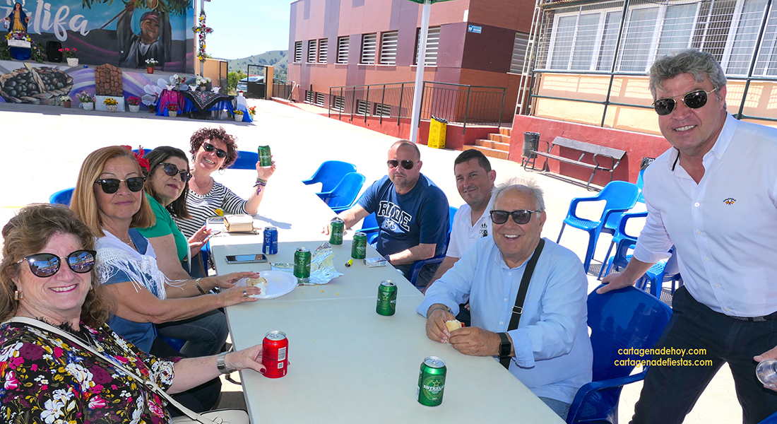 Animado domingo en el pueblo del oeste cartagenero, con romería de la Virgen Dolorosa de la Muela desde su iglesia hasta el polideportivo, donde estaba la cruz de mayo y donde se llevó a cabo una jornada de convivencia, enriquecida por la tarde con el concierto de Adrián Ruiz y loterías familiares.