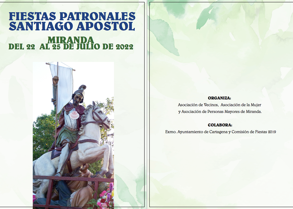 - Ofrecemos el programa completo de actos de las cuatro jornadas festeras, en las que hay noche de migas, mediodía de gran arroz y procesión con Santiago Apóstol.