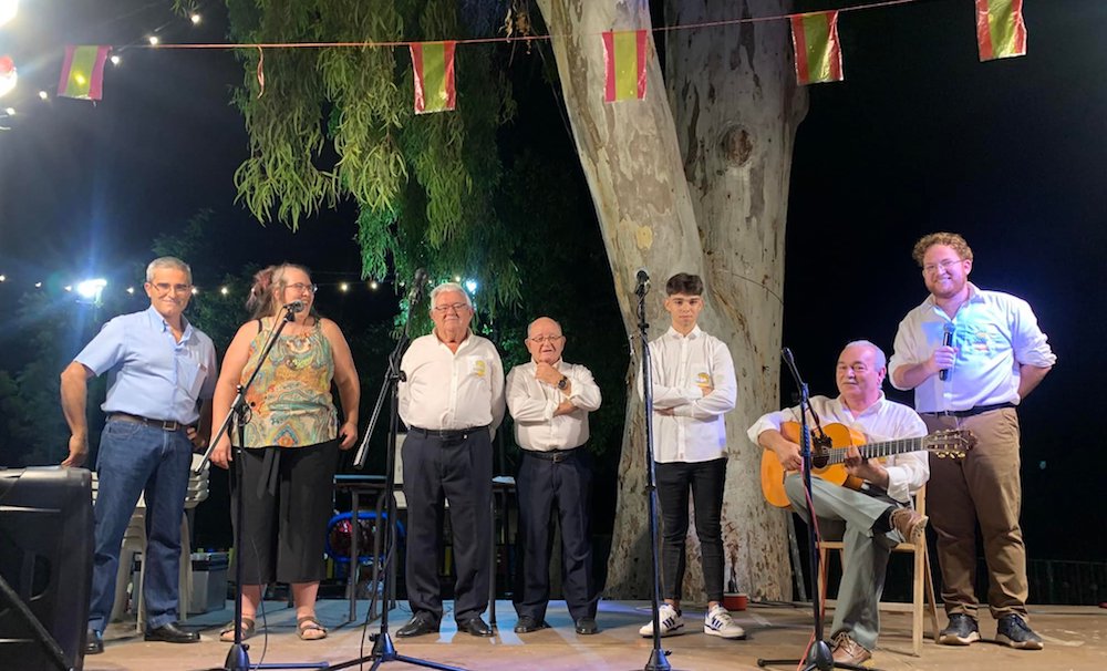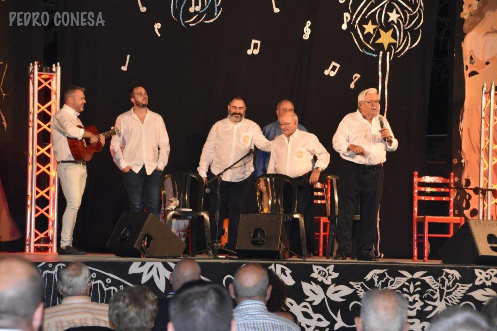 El jueves, dentro de los festejos programados por la asociación vecinal de Perín, fue la plaza de la Iglesia la que acogió la presencia de una representación de la asociación 'José María Marín'. En concreto, este 'destacamento' fue el integrado por José Martínez Sánchez ‘El Taxista’, Juan Diego Celdrán ‘de Tallante’ y Tomás Parra, junto a los repentizadores locales Natalia Martín ‘La niña de La Magdalena’ y Juan Ortega ‘El Vorico’, con Juan Noguera ‘El Llanito’ a la guitarra y el cantaor Alfonso Conesa ‘El Levantino’, quien anoche volvió a ofrecer su aflamencada voz en su casa, el Molino Derribao, donde la presencia de los troveros enriqueció la jornada de apertura del Festival Nacional de la Canción Española. Junto a él, estuvo el otro decano de este arte de la improvisación poética, ‘El Taxista’, y otro clásico paladín del trovo como Joaquín Sánchez 'El Palmesano', además de las nuevas hornadas de exponentes de este arte.