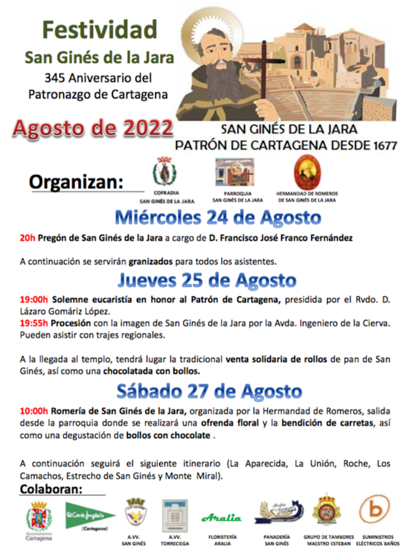 Francisco José Franco Fernández abre esta tarde (20 horas) con su pregón los actos organizados en honor al patrono por la cofradía y la parroquia. El historiador e integrante del equipo de cronistas oficiales de Cartagena considera que el santo y el monasterio "entroncan perfectamente con el proyecto de Cartagena Patrimonio de la Humanidad" y también considera "complementarias e importantes" la labor de las diferentes asociaciones que llevan el nombre de San Ginés.