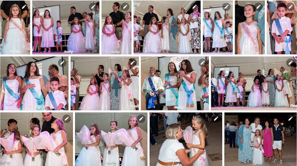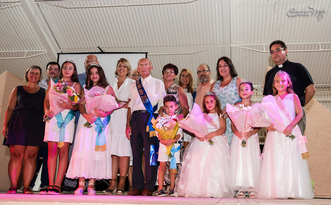 El primer capítulo de las fiestas llegó ayer. Tras el desfile de la comparsa local ‘Limón&Sal’ y la inauguración del recinto festero, las miradas se fijaron en el escenario de la plaza Virgen de los Dolores, lugar donde Julia Otón Martínez, presidenta de la Junta Vecinal Municipal de Los Dolores, pronunció el pregón de apertura y donde fueron coronadas como mises Alba, Claudia y Laura, entre otras, y Miguel como míster dolorense infantil, además de los reyes de la tercera edad y del título de ‘Vecino del año 2022’, que recayó en Juan Rodríguez (quien durante años y hasta principios de este 2022 ha presidido al colectivo de mayores), siendo los encargados de entregar los símbolos que lo acreditan con esos honores los representantes de las asociaciones de vecinos de Los Dolores y de San Cristóbal, el párroco Antonio José Palazón, el edil de Descentralización (Diego Ortega) y la alcaldesa de Cartagena, Noelia Arroyo. También hay que reseñar la presencia entre el público del diputado Antonio Calderón y de María Casajús, directora regional de Carreteras, además de varios presidentes de juntas vecinales. El acto fue presentado por Adela Gutiérrez, de la comisión de fiestas organizadora, y lo cerró la música de Dúo Minerva.