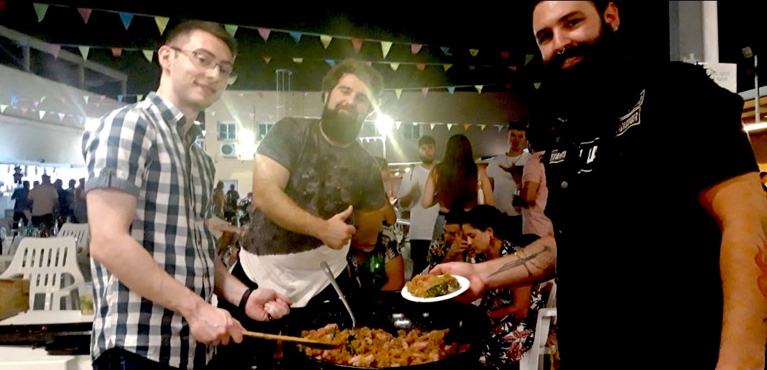 Es tradicional que esta popular cita se lleve a cabo a las dos de la mañana entre sábado y domingo. Este año, en el regreso de las fiestas, ha vuelto a tener lugar con una alta participación elaborando este tradicional plato.