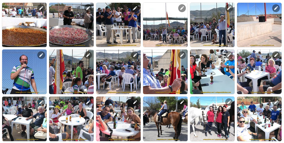 Y después... ¡a comer!, pero en la compañía de todos los que decidieron compartir esta amena jornada. Primero hubo productos típidos del secano cartagenero ofrecidos por los vecinos y después, un arroz gigante para trescientas personas, por 2,50 euros para sufragar gastos. Y así comenzó la tarde, en la que sorteos y la música de Dúo Gala potenciaron el buen ambiente de una jornada organizada por la asociación de vecinos con la colaboración de la junta vecinal municipal y el Ayuntamiento de Cartagena.