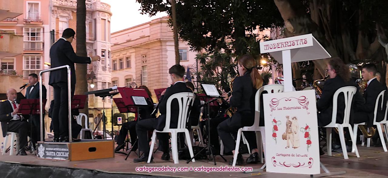 Hubo más capítulos, como la puesta de largo del ‘Himno modernista de Cartagena’, compuesto por el músico Jesús Añó y el trovero José Martínez ‘El Taxista’, que tras ser interpretado se le regaló a la ciudad, recogiendo la partitura en el simbólico acto el edil Torralba.