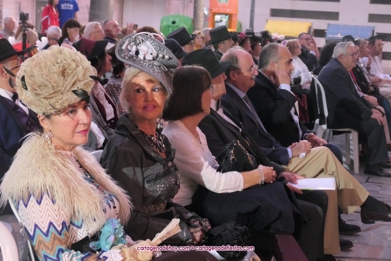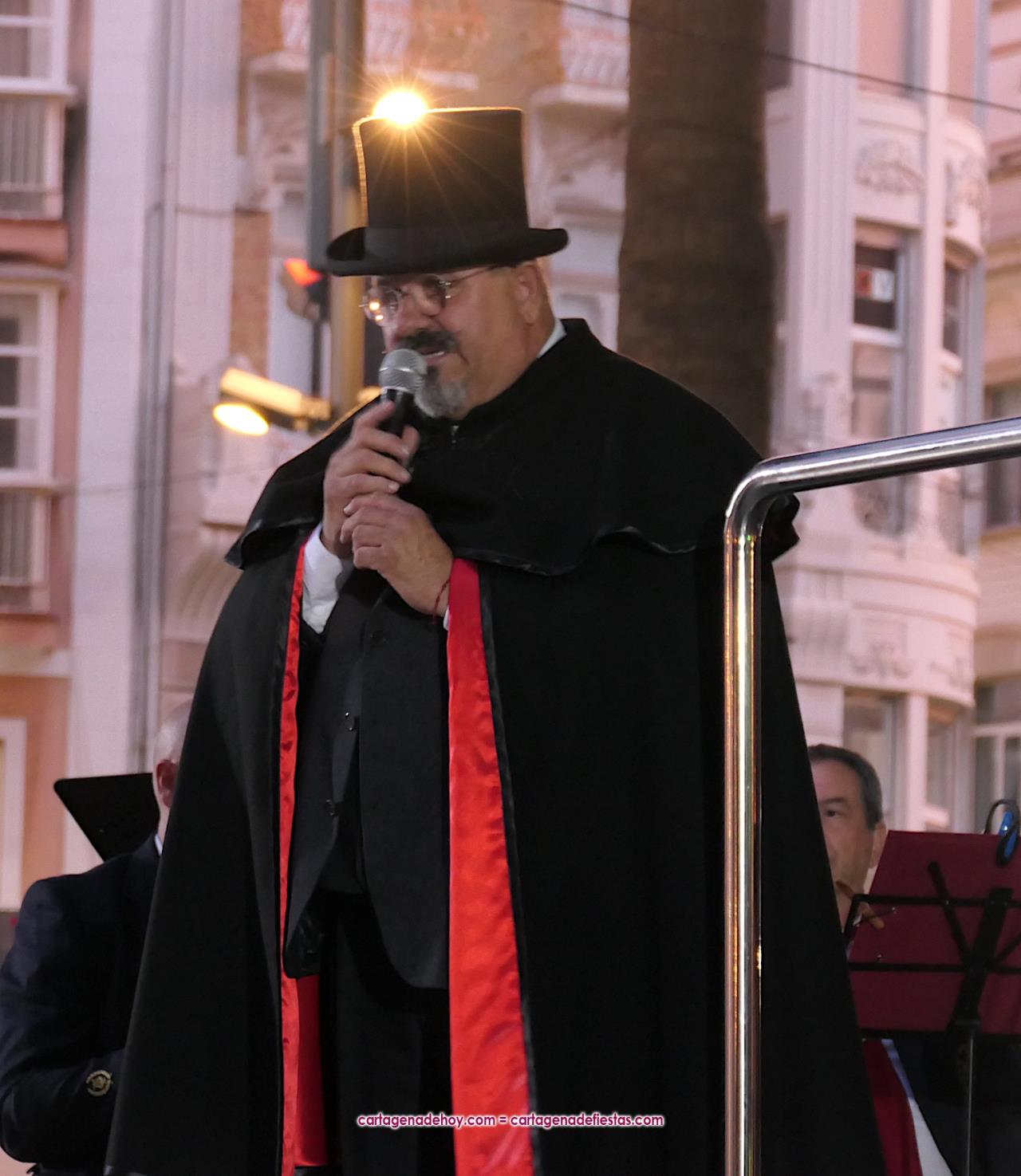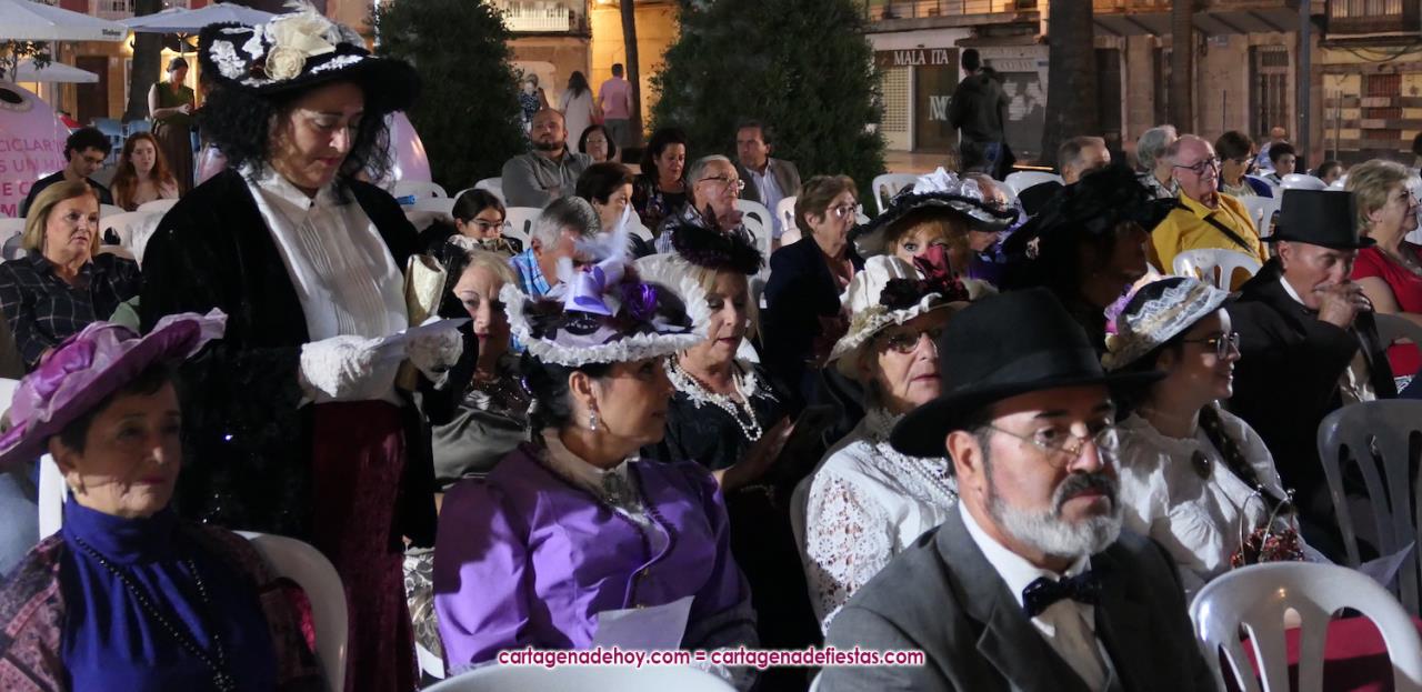 Tomás Martínez Pagán, ‘Proclamador de 2021’, presentó a su sucesor, Pedro Negroles’, quien resaltó en su oratoria (ágil y concisa) que el modernismo fue un movimiento cautivado por la cultura, la música y la belleza, que resultó un punto de inflexión en la evolución de Cartagena y que en esta ciudad hay Semana Santa en primavera, Carthagineses y Romanos a principios de otoño, carnaval en invierno “y modernismo todo el año”, en referencia los numerosos edificios de entonces que existen en el casco antiguo, como los que anoche estaban en un lateral de la plaza.