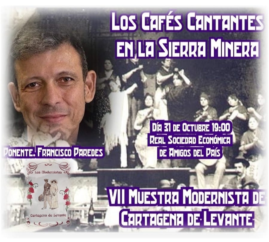 La séptima muestra del modernismo de Cartagena acoge hoy la ponencia ‘Los cafés cantantes en la sierra minera’ a cargo del flamencólogo unionense Paco Paredes. Tendrá lugar a las 19 horas en la Real Sociedad Económica de Amigos del País.