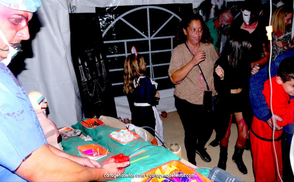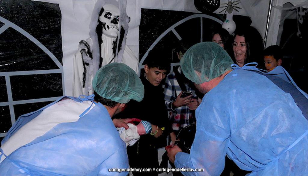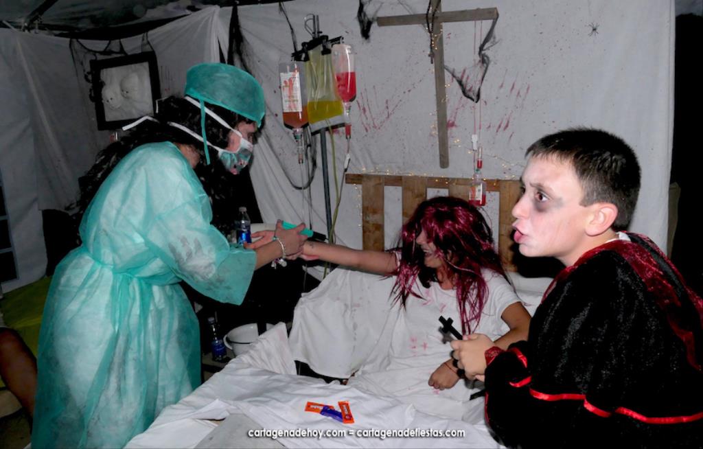 En la galería de fotos adjunta a este artículo ofrecemos una secuencia de grupos esperando acceder, la entrada, el paso por las salas del hospital y el cementerio exterior, además de brujas, fantasmas y otros 'bellos' anfitriones.