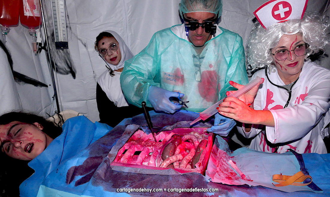 ¿A qué había acudido tanta gente? El imán de atracción principal era un hospital psiquiátrico organizado (y muy trabajado) por la asociación de vecinos y la comisión de fiestas de Galifa. En el interior, varias salas cargadas de sangrientas escenas, enfermos totalmente idos y 'sanitarios' que no le andaban mucho a la zaga, todo salpicado de personajes siniestros dando sustos, especialmente los situados en la salida, que formaban un pasillo que no había manera de evitar. Tanto en la entrada como a la salida, un 'currado' cementerio del terror con algunos golpes de humor. La verdad es que todo el montaje era genial y justificaba la espera en la larga cola de acceso para entrar y que muchos tuvieran que dejar sus coches al llegar a Galifa bastante alejados del epicentro de la actividad.