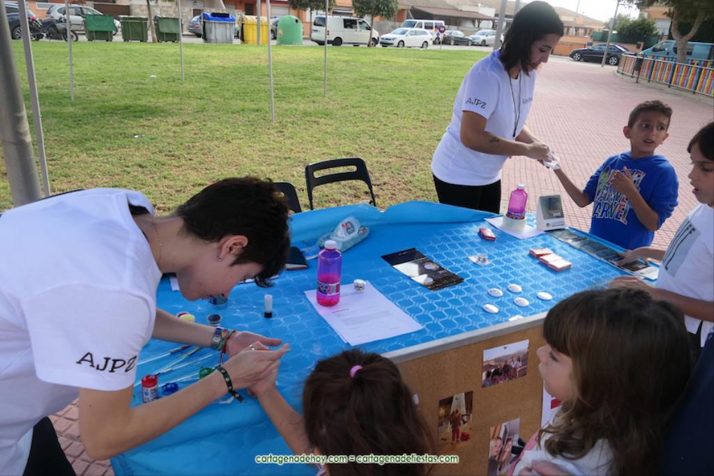 Asociación Juvenil de Pozo Estrecho, Hermandad de Semana Santa, Cáritas parroquial, Asociación Española contra el Cáncer, CEIP y AMPA de San Fulgncio, Asociacón Columbares, Cartagena Libre de rumores, AMPA de Nuevo Futuro, certamen teatral de pozo Estrecho, grupo de mujeres y hombres magrebíes de Pozo Estrecho, escuela infantil, bibliotecas municipales, comunidad ucraniana, asociación de vecinos ‘San Fulgencio’ y Federación de Asociaciones de Vecinos de Cartagena y Comarca han montado sus puestos en la plaza que lleva el nombre de la Sociedad Artístico Musical ‘Santa Cecilia’, donde han explicado a los numerosos visitantes sus actividades y proyectos, además de ofrecer en algunos casos obsequios, como los dulces de la comunidad magrebí.
