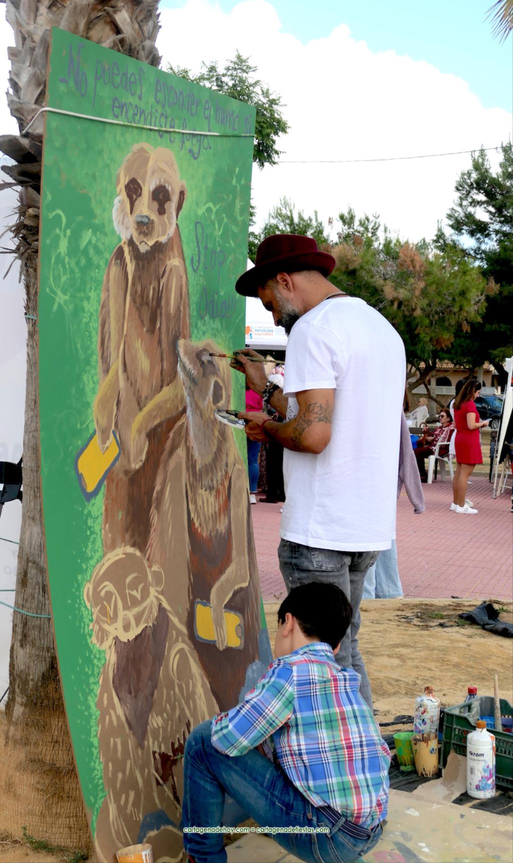 Antonio Almagro ha sido el coordinador de la feria y a quien se observa en la fotografía ubicada sobre estas líneas junto al artista galileo Javier Lorente, autor de la imagen del cartel de esta sexta edición. La jornada también ha contado, entre sus visitantes, con la presencia de la vicealcaldesa de Cartagena, Ana Belén Castejón, y del teniente de alcalde, Manuel Padín.