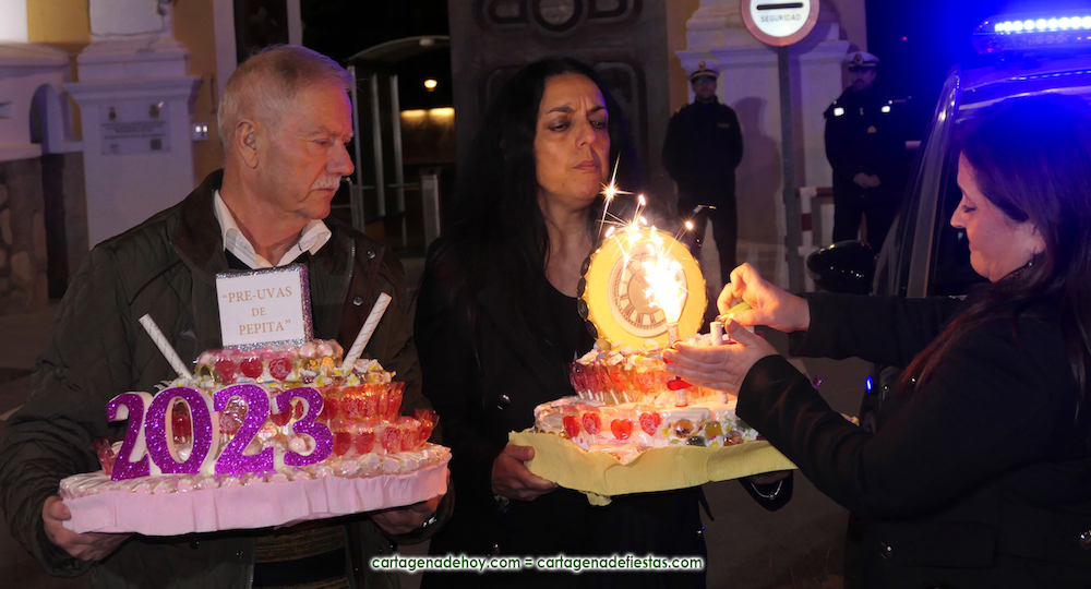 El tributo a esta cartagenera de pro y de enorme vitalidad fue, sin duda, lo más importante de la noche, estando ya cosido su recuerdo a cada 30 de noviembre y a las 12 uvas más cartageneras. Presentes estuvieron sus hijas Mari Cruz, Belén y Ana, al igual que otras personas que tenían muy latente el recuerdo a Pepita, como Antonio Cegarra, otra persona clave en el origen de las preuvas (es el primer presidente de la nueva 'Asociación preuvas de Pepita') y que fue quien, cuando llegó la medianoche, portó una de las dos tartas, como siempre ha hecho, siendo Mari Cruz quien llevaba la que hubiese cogido su madre. Esas tartas de chuches fueron elaboradas con mucho cariño por Ana Cristina Martínez Cegarra de la misma forma en que lo hacía Pepita, al igual que puso mucho cariño Mariló, de la asociación 'Despierta Cartagena', en el montaje del vídeo proyectado.