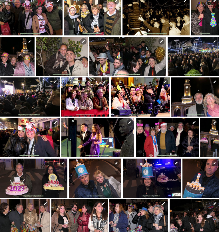 Entre los asistentes también se encontraba una amplia representación del gobierno municipal, encabezado por la alcaldesa, y el almirante del Arsenal. Todos se reunieron bajo el reloj gemelo del ubicado en la madrileña Puerta del Sol para la ingesta de uvas, que no fue como otros años. No sé si faltó alguna campana, si la tapó el sonido de la megafonía, si es que iban más rápidas... No lo sé, pero los comentarios de algunos presentes es que no eran como las esperaban, pero el caso es que se tomaron las 12 uvas y esta noche llegaran otras 12, pues en Cartagena, desde 2015 y gracias a Pepita, el nuevo año lo recibimos con 24 uvas. Somos así. ¿Chulos?, no creo, pero sí algo diferentes.