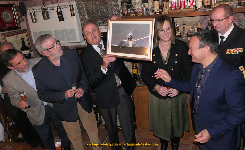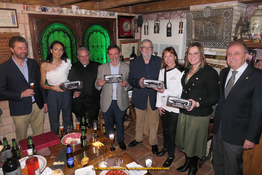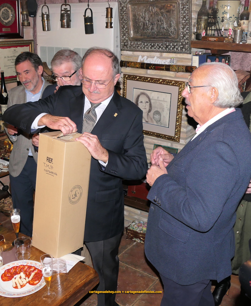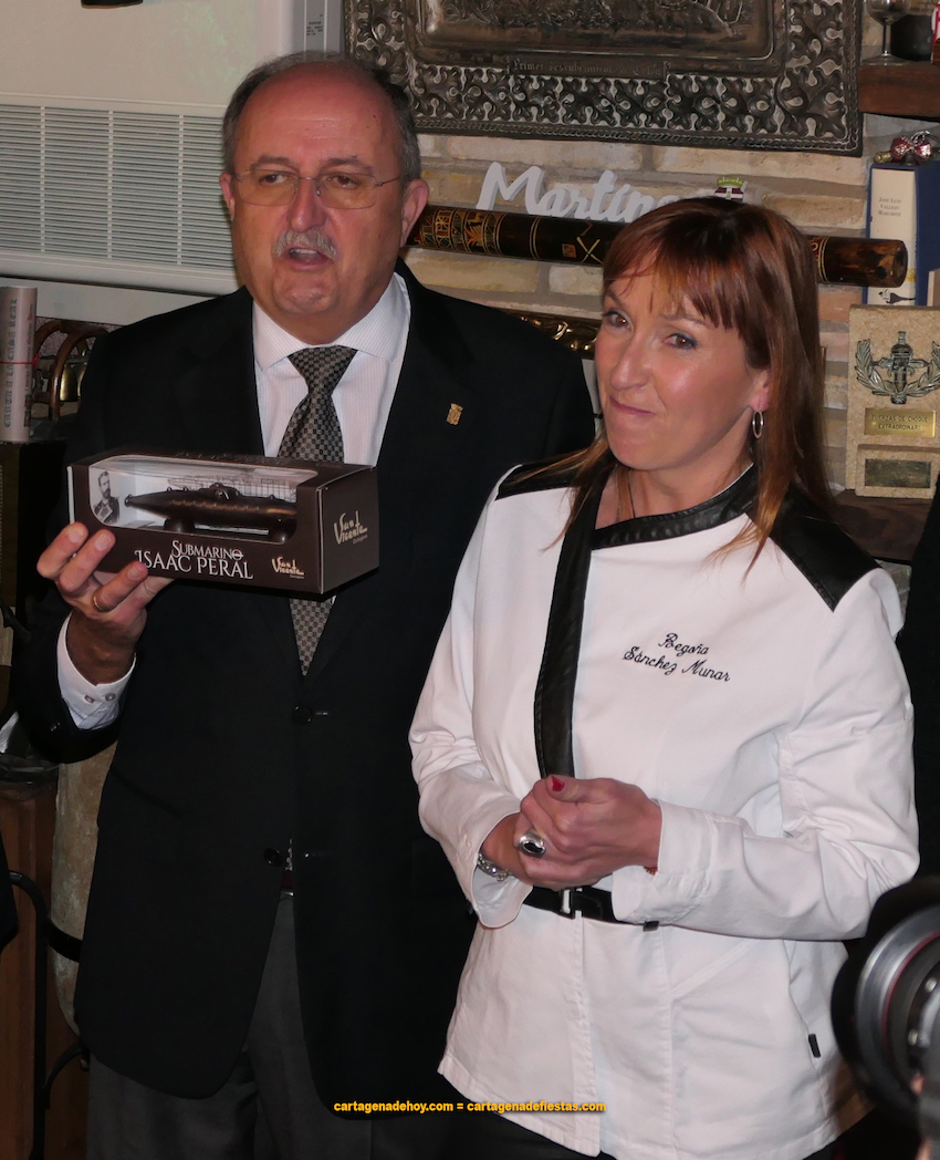 Tras la sucesión de tertulias cruzadas entre personas de diferentes gremios, además de saborear manjares del Campo de Cartagena, acompañados de estupendos líquidos, llegó el tradicional brindis, que estuvo precedido por la presentación del óleo con temática del Polo Sur y la figura del Zulo que ha pintado Francisco Solana y con cuyas réplicas se ha obsequiado a los asistentes junto con un póster de fotos las primeras 14 ediciones de este brindis. Por su parte, Bodegas Juan Gil ha obsequiado con lo que es un auténtico ‘botellón’ de sus caldos al anfitrión, a quien Noelia Arroyo también ha entregado una placa de gratitud, mientras que el subdelegado del gobierno, la vicepresidenta del gobierno regional y el presidente de la Asamblea Regional han recibido ejemplares del creativo submarino Isaac Peral de chocolate con el mensaje de que pongan de su parte para que el submarino ‘Tonina’ pueda ser visitable en Cartagena y no suceda como uno de sus ‘antepasados’ que salió de la ciudad para ser atractivo turístico en Torrevieja, como expuso Martínez Pagán.