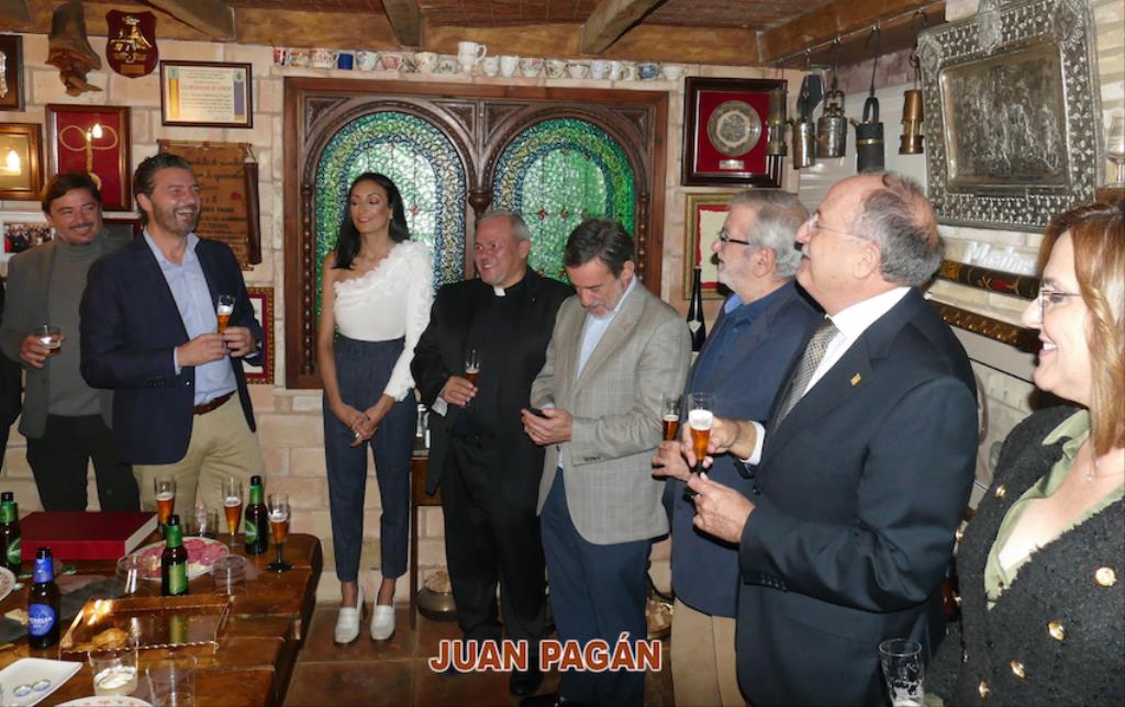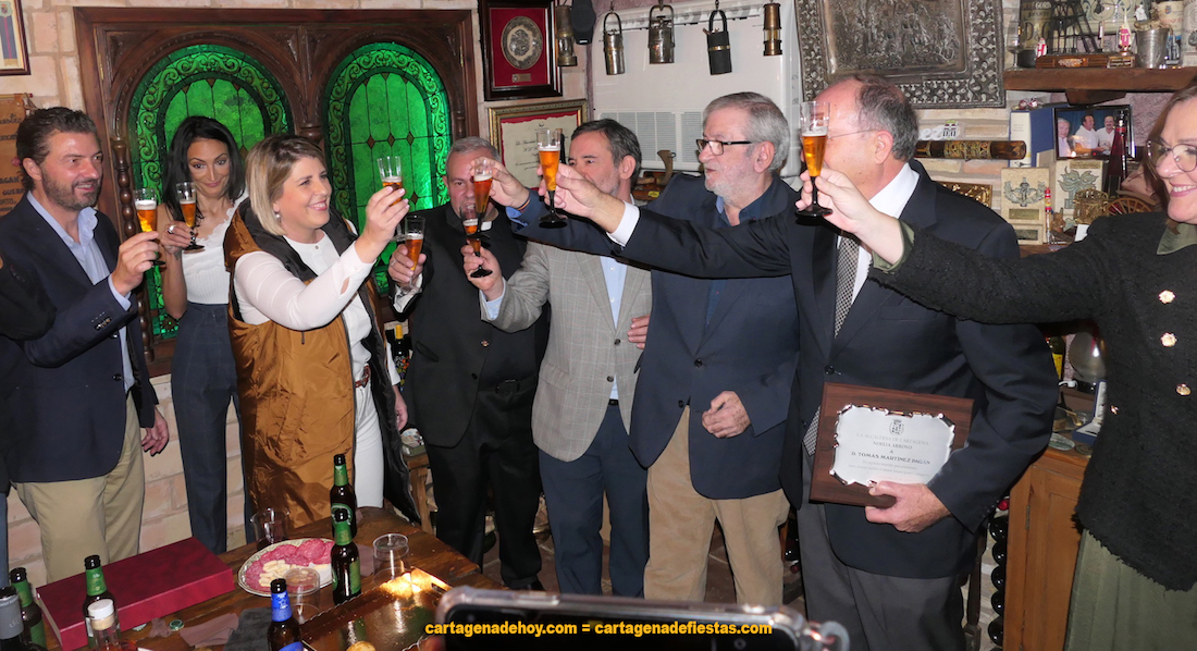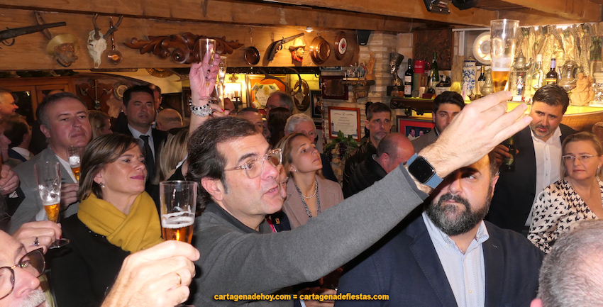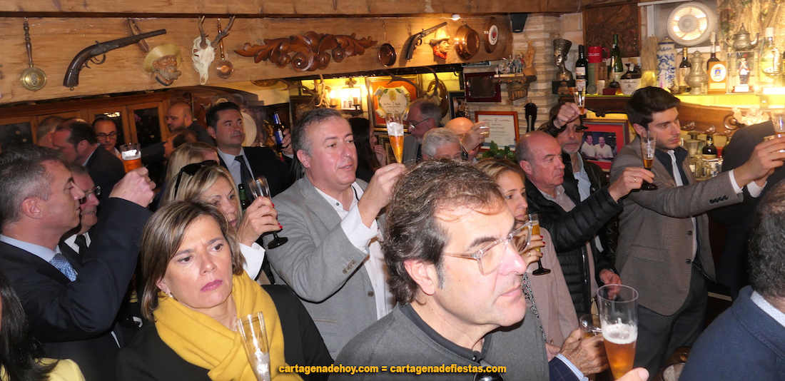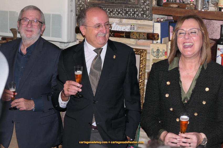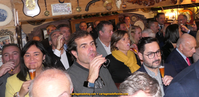 También han hablado la alcaldesa de Cartagena, Noelia Arroyo; el sacerdote Lázaro Gomariz, Francisco Jimeno (protagonista de la anécdota de la mañana al referirse a Francisco Belmonte como presidente del Real Murcia), la vicepresidenta del gobierno regional, Isabel Franco, y, como es obvio, el anfitrión, quien, entre comentarios agradables y ‘punzantes’ (siempre con su ‘grasia’), también ha disculpado a los que no han podido asistir. Por cierto, el brindis no se ha llevado a cabo con cava, sino con cerveza de 6,8 grados embotellada ayer por Estrella de Levante.