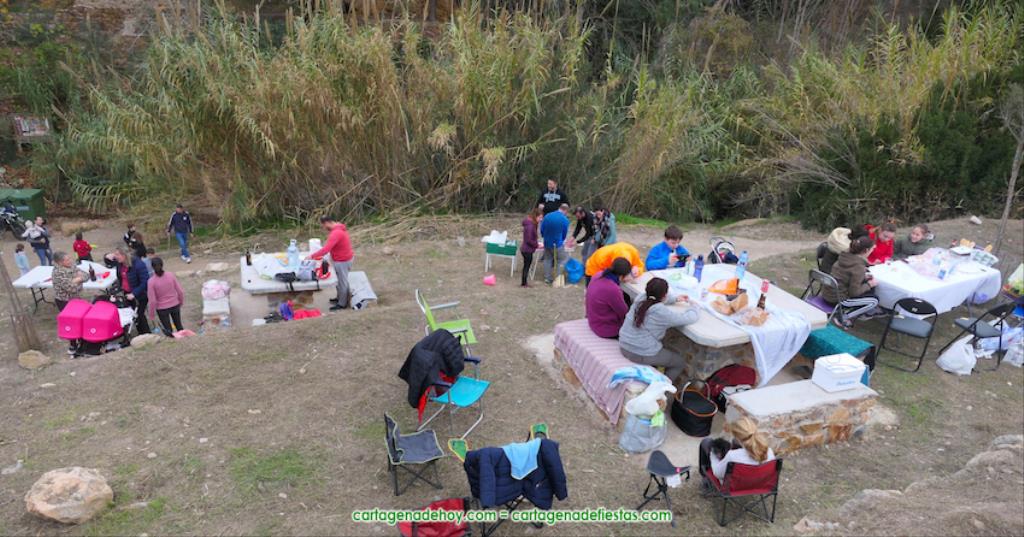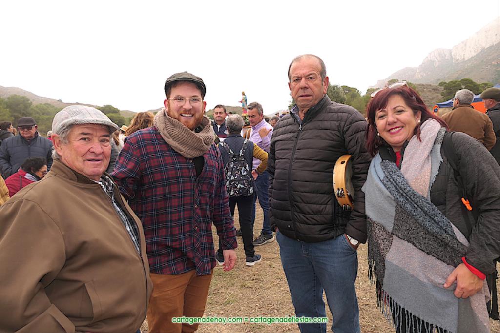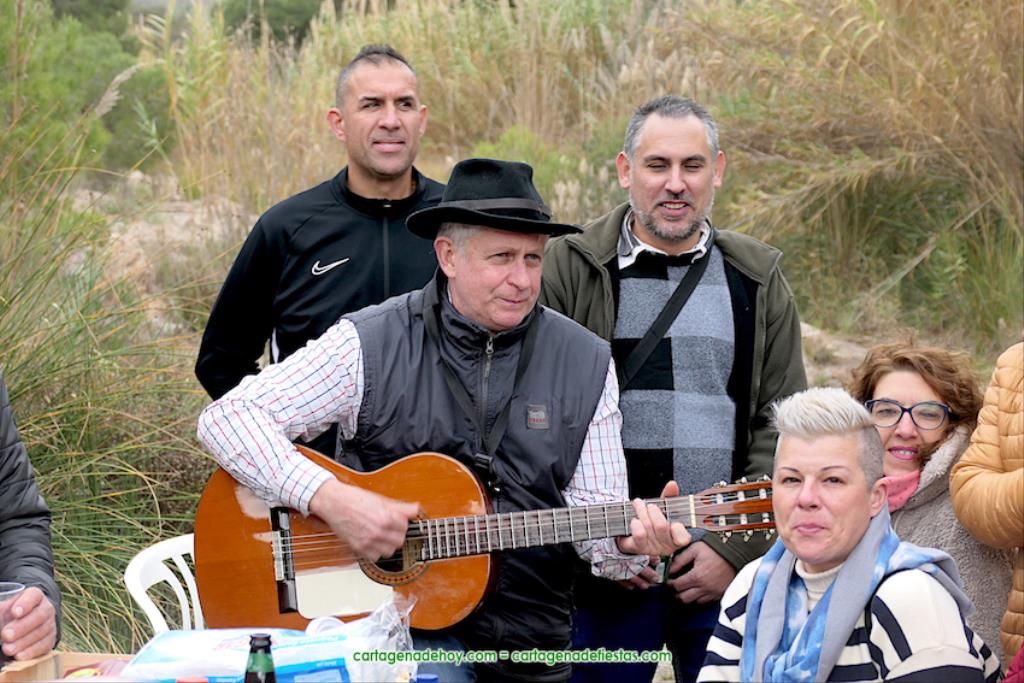 De forma paralela, comienzan a montarse las mesas de los que protagonizarán una gran convivencia en el entorno de la ermita con manjares de nuestra gastronomía. Al igual que la romería, este encuentro se recuperaba después de tres años (por el parón pandémico), pero observamos menos gente que en 2020. ¿Por qué?, sería la pregunta. Pudo ser porque hubo un clima adverso con algo de frío (quizás el primer día fresco de toda la Navidad) y también pudo influir que esta vez, siguiendo las indicaciones de Medio Ambiente, no se podía acceder con coches, los cuales se quedaban alejados, lo que influiría en la asistencia de personas con movilidad reducida por la edad o por problemas físicos.