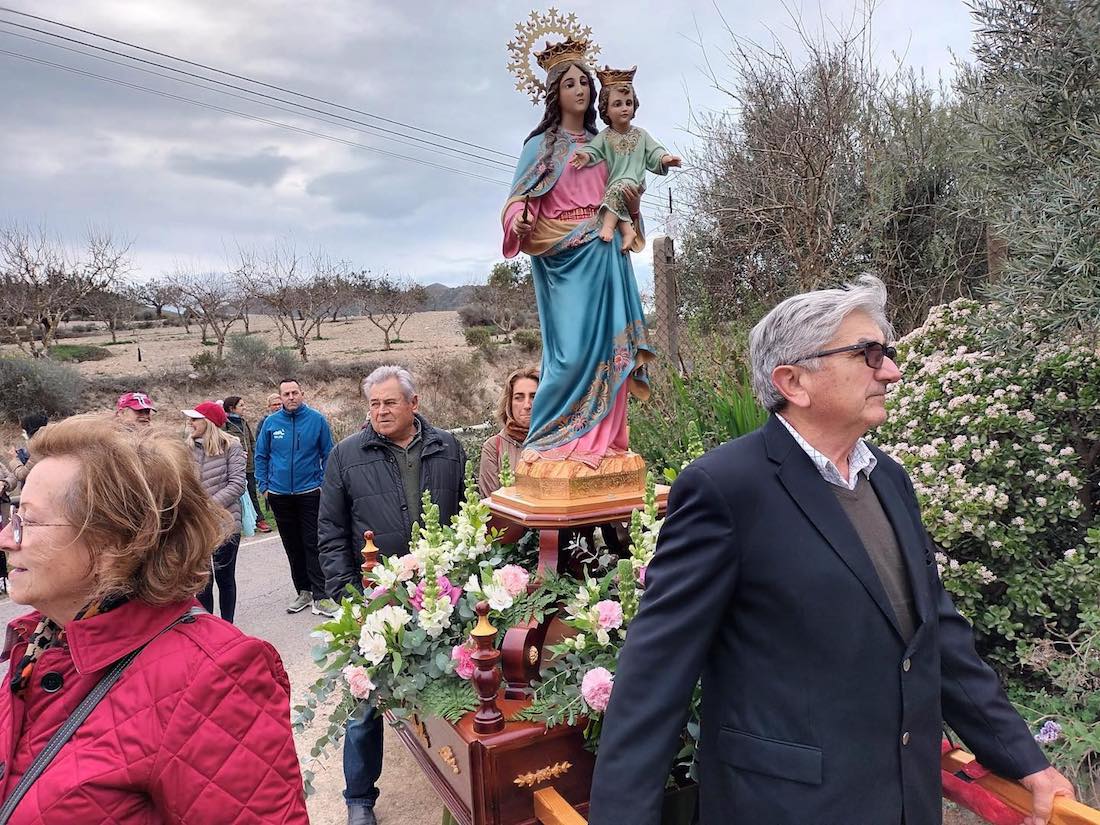El inicio es en la iglesia de Tallante con una misa a cuya culminación hay reparto de chocolate con bollos. Después, con el estómago reforzado, salida hacia Rincón de Sumiedo y de ahí a El Cañar, donde las Virgen de la Luz es recibida por las cuadrillas y tiene lugar otra eucaristía, esta vez al aire libre con las palmeras y Peñas Blancas de fondo de altar.