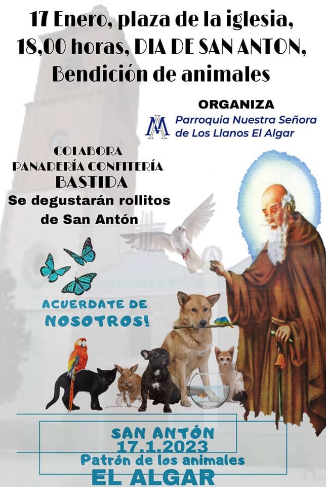 La parroquia de Nuestra Señora de los Llanos celebrará el martes próximo por la tarde (18 horas), en la plaza de la Iglesia, el día de San Antonio Abad, patrón de los animales. Habrá degustación de rollicos.