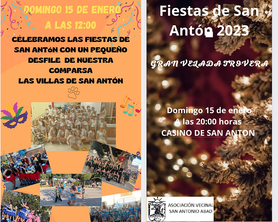 Cuentacuentos, chocolatada, desfile de la comparsa ‘Las villas de San Antón’, arroz popular, misa y trovos este domingo en los festejos sanantoneros, mientras que en el pueblo galileo hay eucaristía, actividades infantiles con juegos e hinchables, mañaneo de tapas, actuaciones diversas y lotería familiar.
