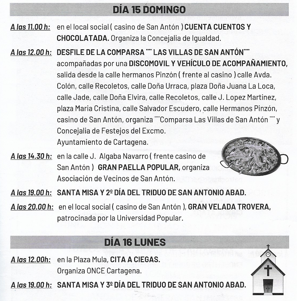 Agenda dominical de las fiestas de San Antón y de Pozo Estrecho