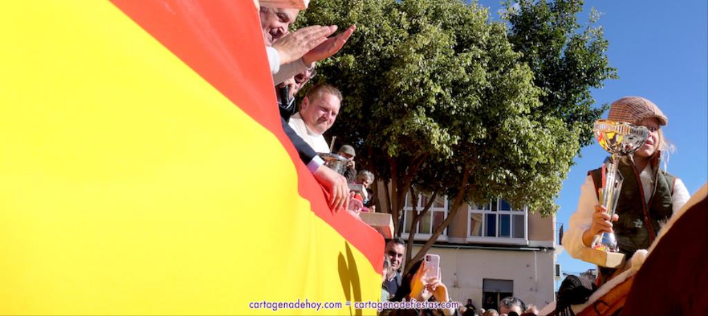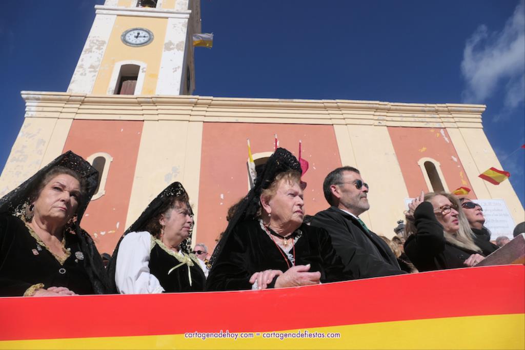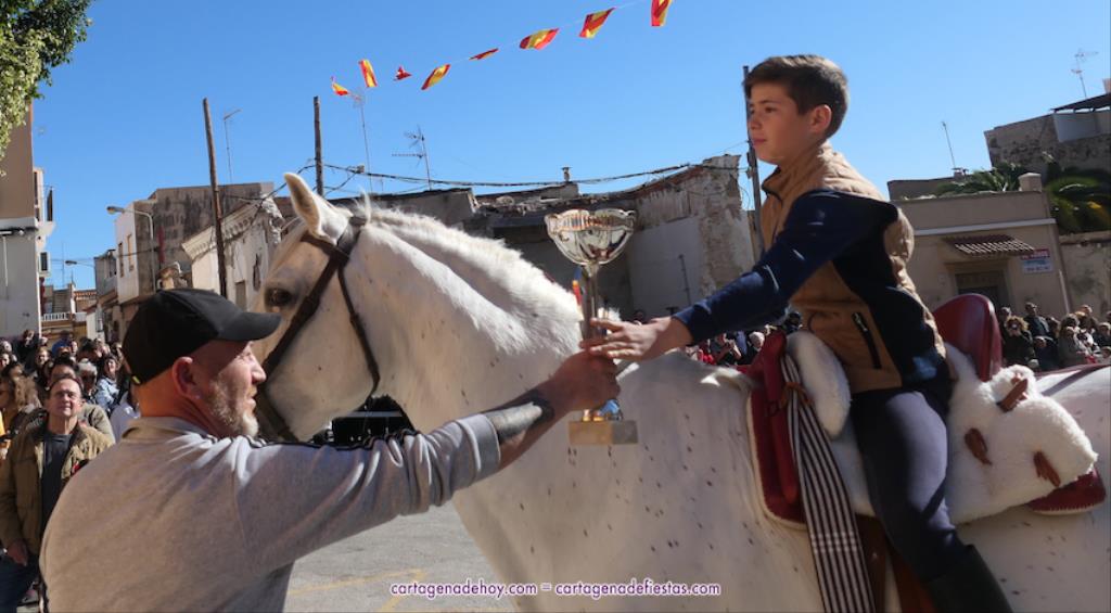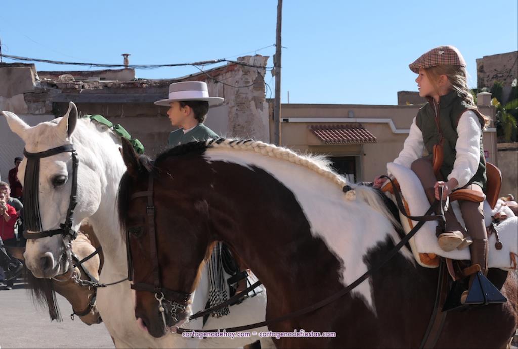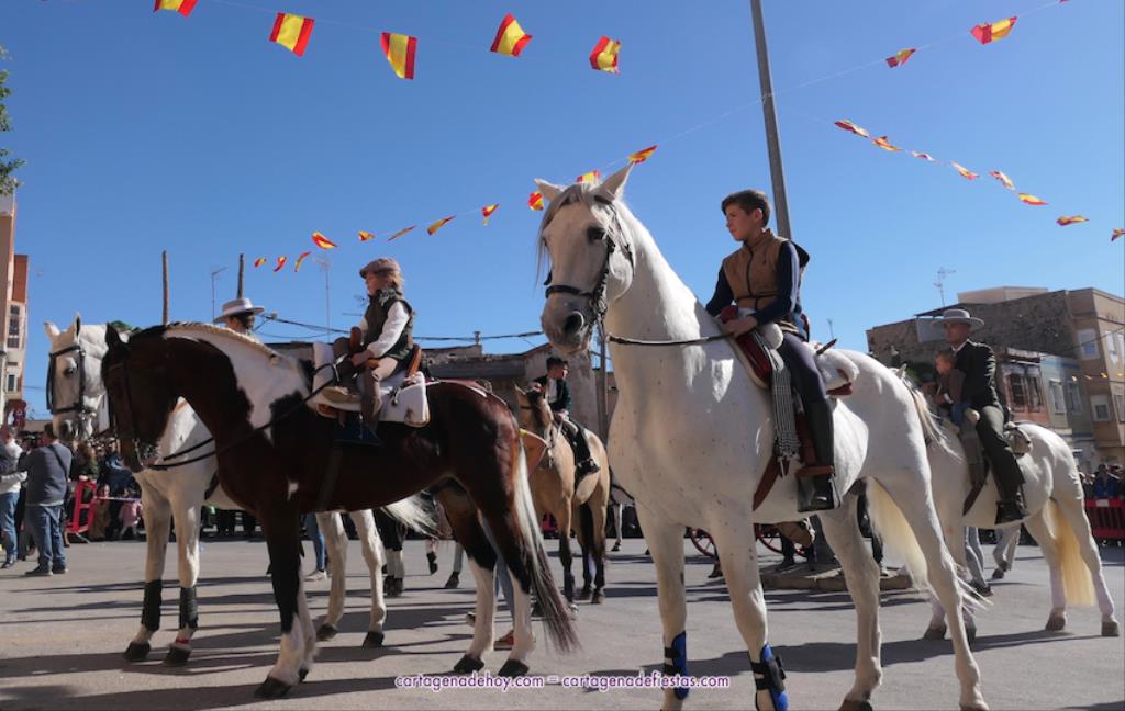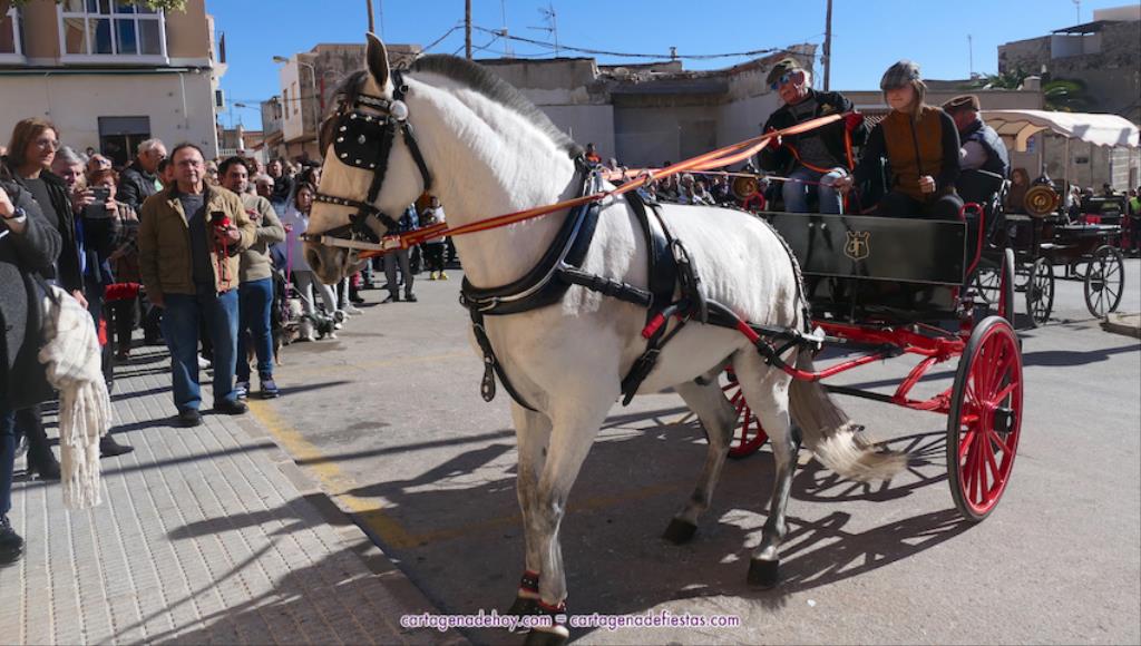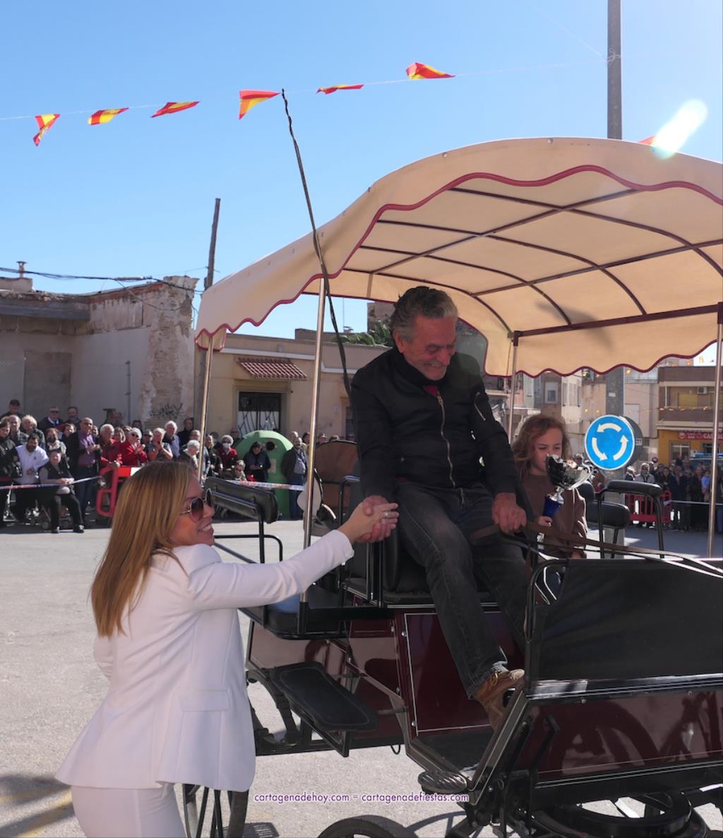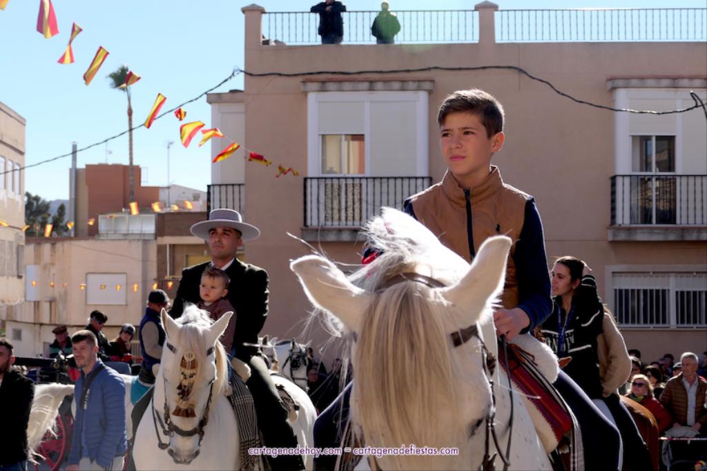 Después, se ha llevado a cabo la bendición de animales a cargo del párroco, Saúl Sánchez Fernández, quien en 2022 fue la primera vez que se 'lanzó al ruedo' de la plaza y ha repetido en este, ahora con más equinos. "Lo hice entonces por seguridad y para evitar problemas con los caballos cuando tenían que subir la acera y gustó, por lo que he repetido, pues además queda bien estéticamente", ha expuesto a Cartagena de Hoy (Cartagena de Fiestas). Además, esa iniciativa ha permitido la agilidad del desarrollo del acto, que ha atraído a numerosos espectadores y una amplia presencia del panorama político local, encabezado por la alcaldesa (Noelia Arroyo) y vicealcaldesa (Ana Belén Castejón).