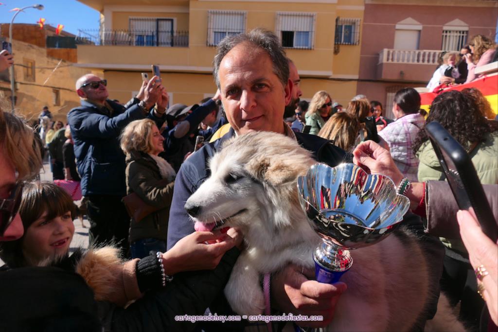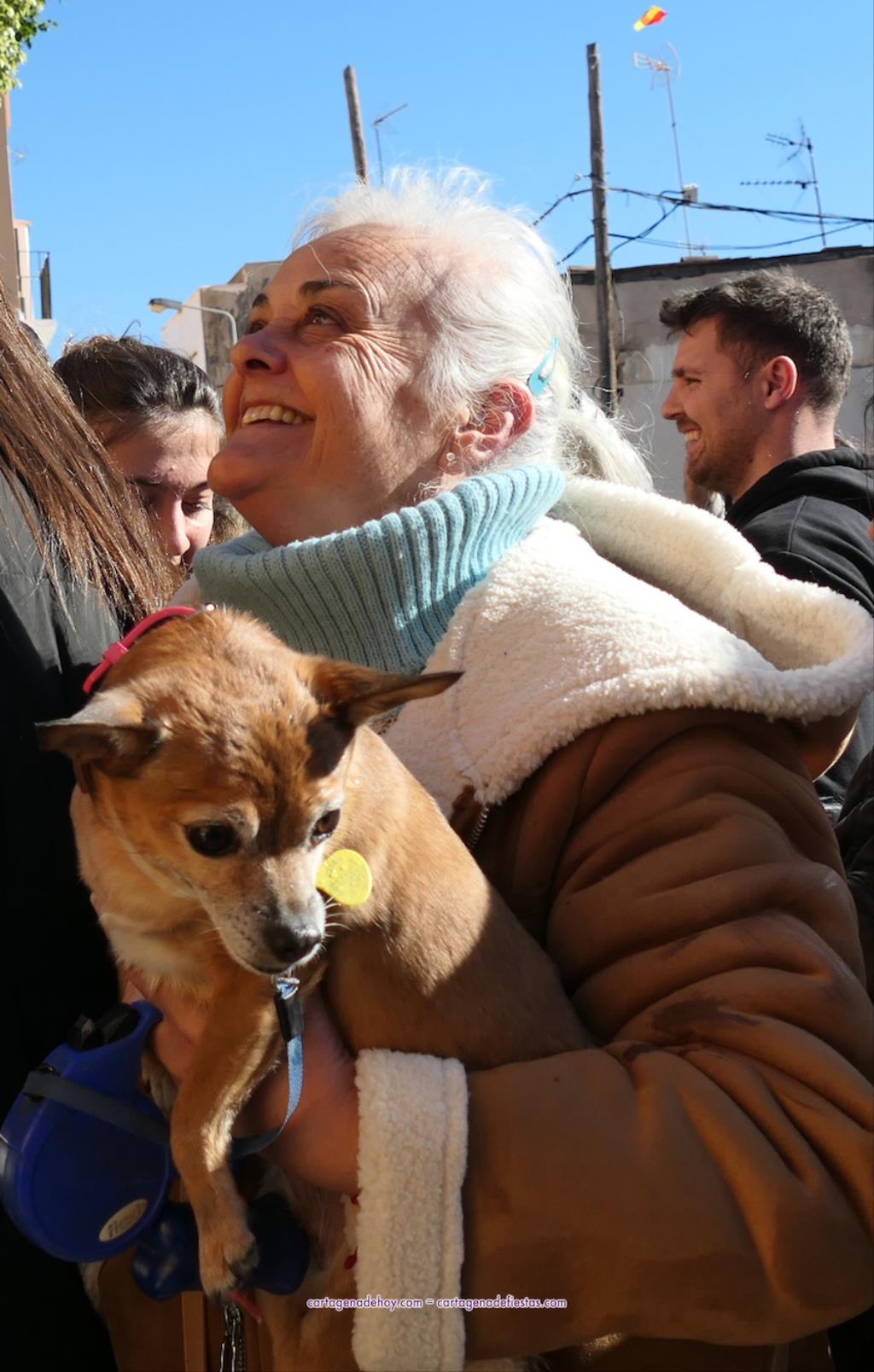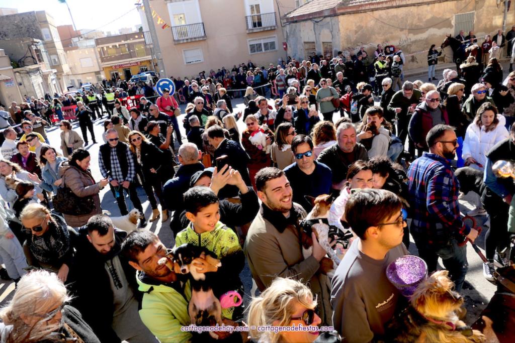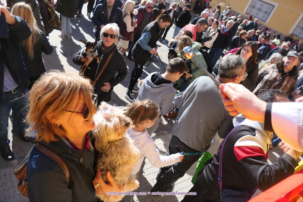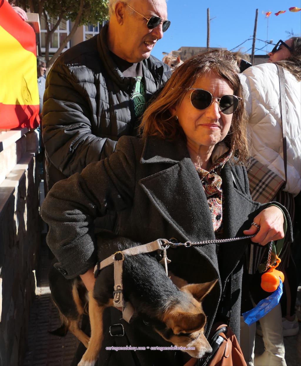 Tras la ausencia de este acto en 2021 y la versión reducida y con mascarillas de 2022, hoy, en una mañana soleada y ventosa, el agua bendita del patrón de la villa cartagenera de San Antonio Abad ha vuelto a ser distribuida entre las mascotas frente a la iglesia, en un acto que ha tenido como preludio le eucaristía del interior del templo oficiada por Ramón de la luz Zapata.