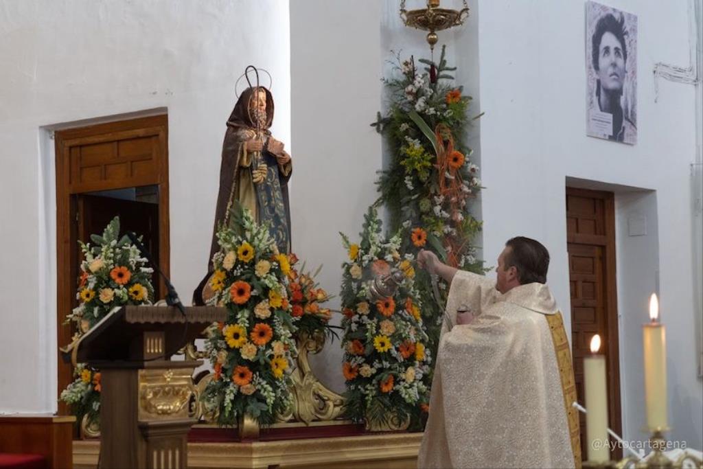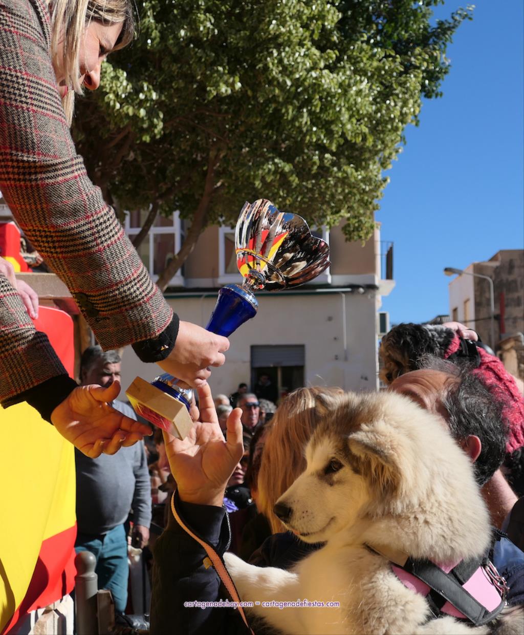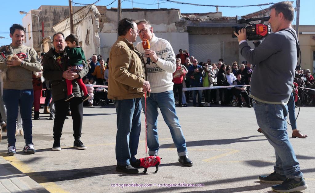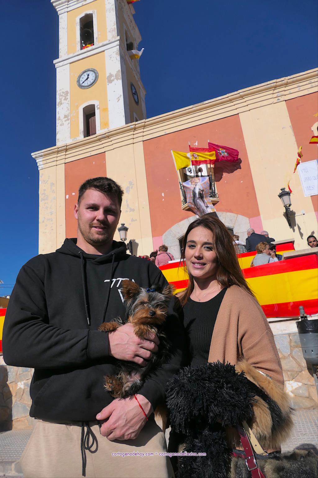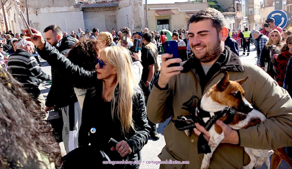 Tras la ausencia de este acto en 2021 y la versión reducida y con mascarillas de 2022, hoy, en una mañana soleada y ventosa, el agua bendita del patrón de la villa cartagenera de San Antonio Abad ha vuelto a ser distribuida entre las mascotas frente a la iglesia, en un acto que ha tenido como preludio le eucaristía del interior del templo oficiada por Ramón de la luz Zapata.