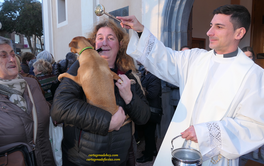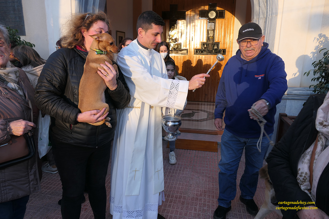 Perros de diversos tamaños, aves y hasta una pareja de 'hamster' fueron las mascotas que recibieron el agua bendita en la parroquia de San Fulgencio de Pozo Estrecho, donde los asistentes superaron a ediciones anteriores.