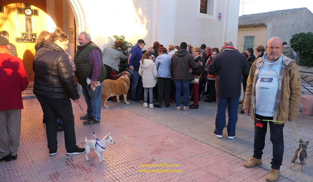 El reverendo Antonio Lucas, párroco de San Fulgencio, fue el encargado de bendecir, en el día del patrón de los animales (San Antonio Abad), a las mascotas que fueron llevados por sus dueños ante la entrada del templo, donde se habilitaron dos mesas para la venta de rollicos de San Antón, con una masiva presencia de compradores.