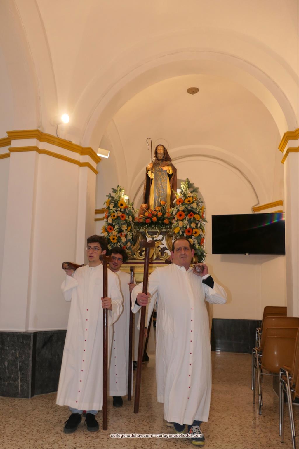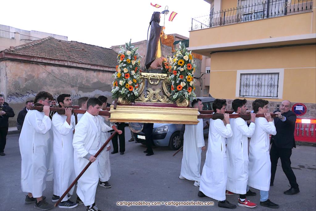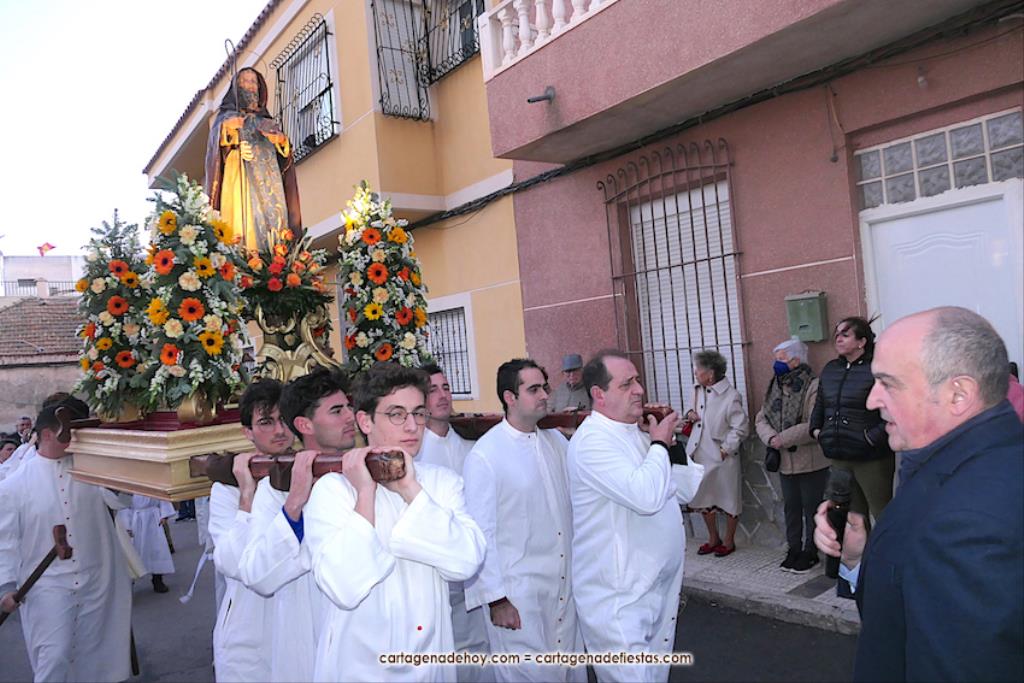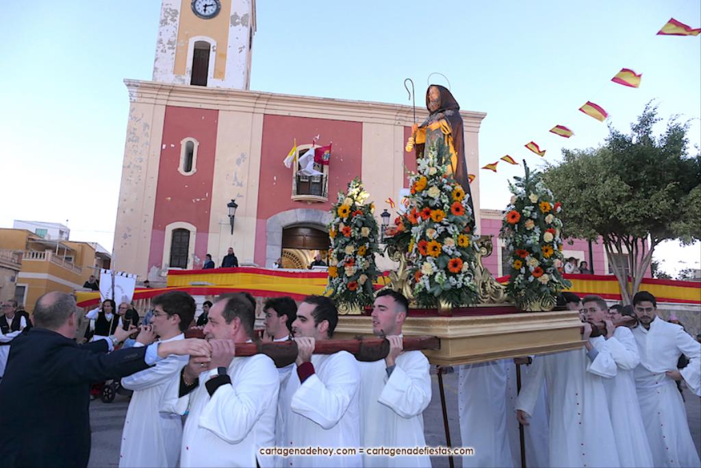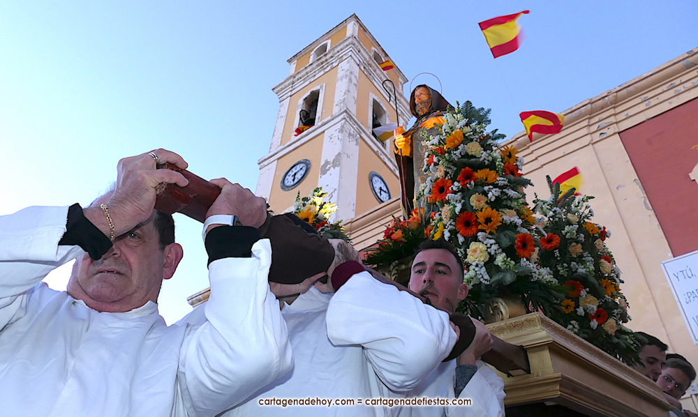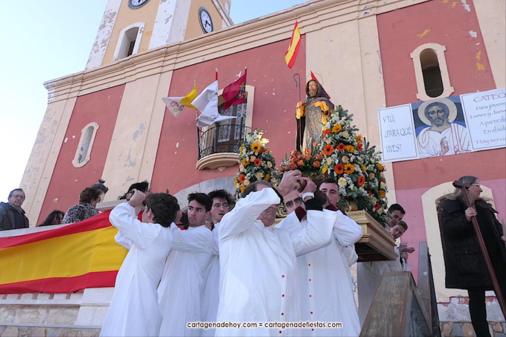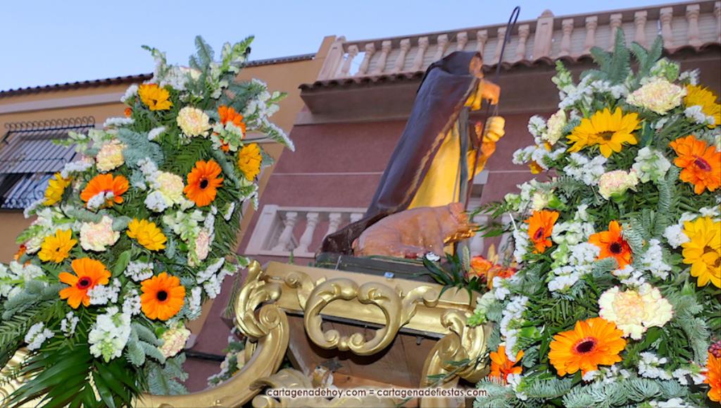 El pasado año hubo problemas por falta de costaleros para llevar al patrón de la villa cartagenera, pero este año se han solventado con la incorporación de jóvenes que fueron los pies de San Antonio Abad en su paseo por su pueblo. GALERÍA DE FOTOS (pinchar aquí)