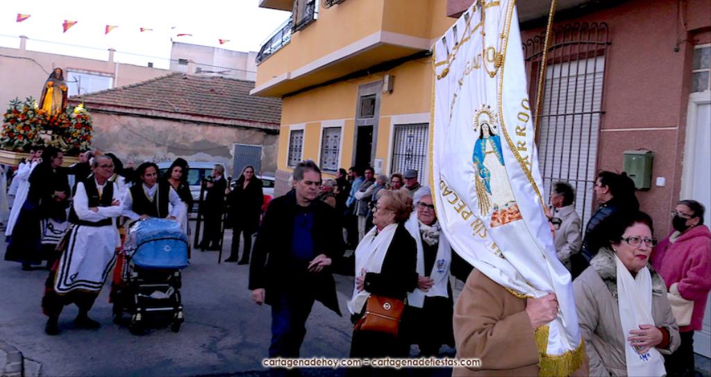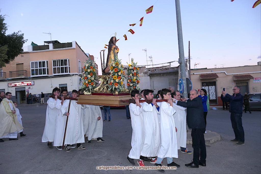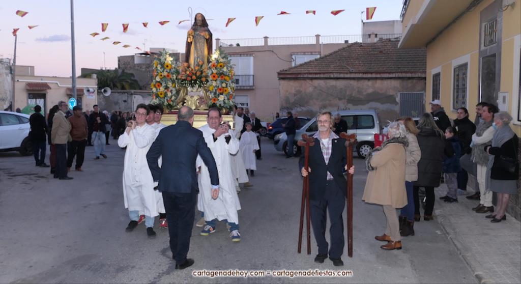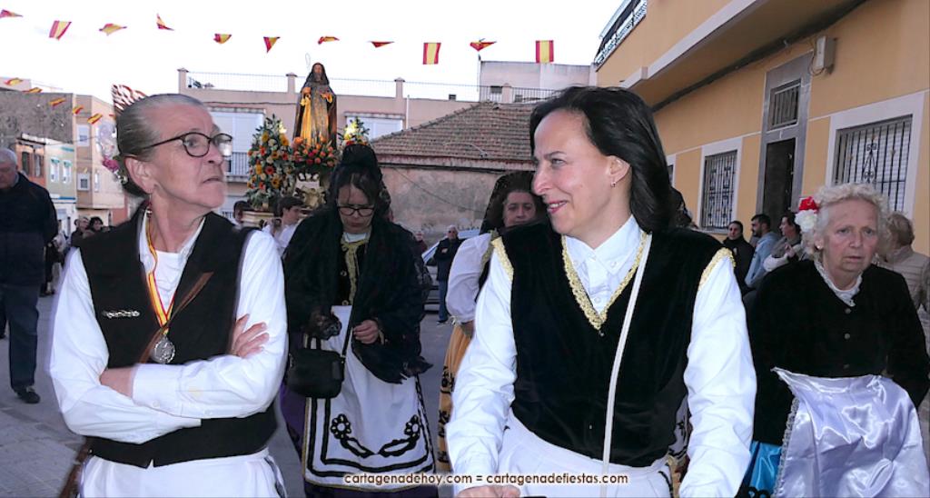 Destacar que en la comitiva, además del reverendo Saúl Sánchez, iban, entre otros, el presidente de la asociación de vecinos, Fernando Gallego, y el hermano mayor de la Hermandad de Romeros de San Ginés, Andrés García, además de varias mujeres de la asociación de romeros de la villa con trajes típicos. La marcha avanzó con el sonido musical de la agrupación 'Cartagena 1990'. Tras la procesión, baile en el local social y el cierre de las fiestas con el castillo de fuegos artificiales, aunque quedaron dos actividades en tiempo extra. Una fue ayer con actividades infantiles y otra será el sábado el encuentro de bolillo.