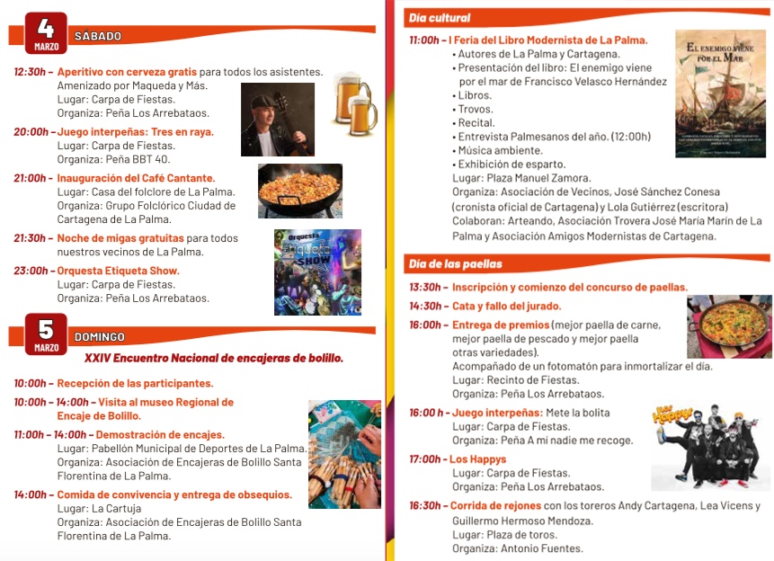 Las fiestas en honor a Santa Florentina ya se viven a tope los fines de semana en La Palma, siendo su punto de partida festero el pregón de 'El Molinero' y la coronación de la corte de honor, acto que tuvo lugar en una carpa abarrotada, que contó con la asistencia de la alcaldesa de Cartagena, Noelia Arroyo; de la vicealcaldesa, Ana Belén Castejón; del teniente de alcalde, Manuel Padín; y de los concejales Juan Pedro Torralba, Irene Ruiz y Carlos Piñana. Al día siguiente tuvo lugar la quinta edición del almuerzo motero, con una alta participación y enriquecido con una concentración de coches clásicos.
