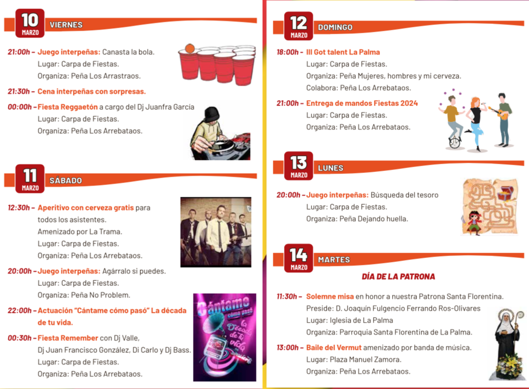 Juegos entre las peñas abren el programa de hoy, que se cerrará con una fiesta 'Reggaetón'. Mañana, matinal con cerveza gratis y música de 'La trama', fiesta 'Remember' y actuación de 'Cántame como pasó'. El domingo será para los talentos locales y la entrega de mandos de 'Los Arrebataos' a la peña que comenzará a preparar las fiestas de 2024. Por su parte, el Café Cantante de la Casa del Folclore tendrá el sábado (23 horas) la música en directo de 'La calle'.