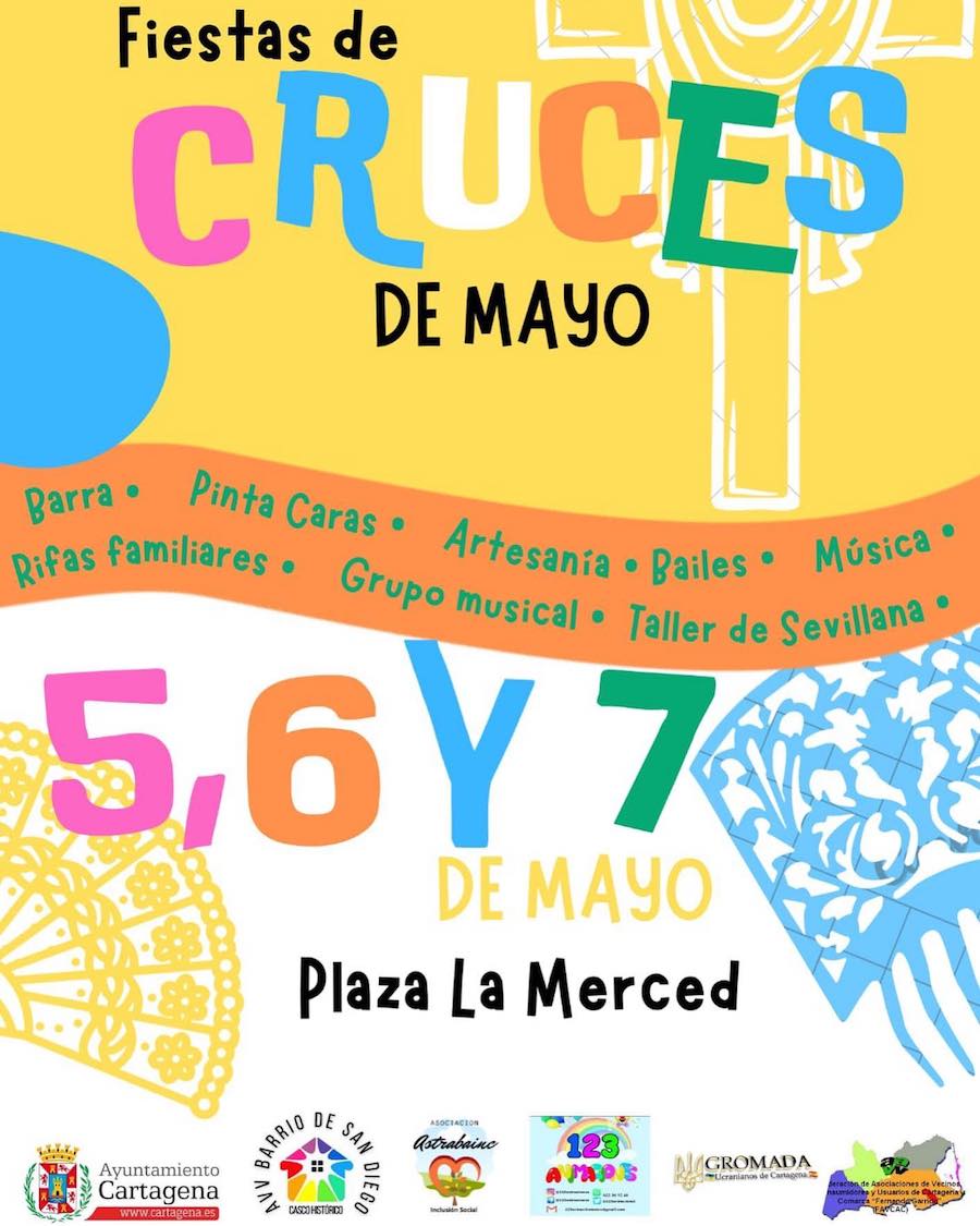 La Asociación de Vecinos Barrio de San Diego y colectivos de este área urbana de Cartagena ha fijado las fechas del 5, 6 y 7 de mayo para la fiesta de la cruz de mayo, don cantina, talleres, bailes, música, rifas, artesanía...