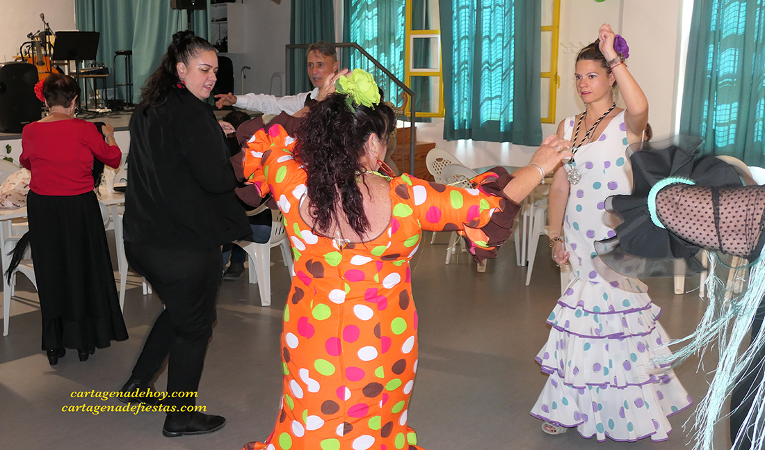 La barriada de Cartagena Norte celebró una animada cruz de mayo entre la noche del sábado y el domingo, destacando el concurso con el tradicional plato de huevos y patatas, además de la degustación de platos típicos, como los michirones, y de los bailes rocieros con trajes de faralai.