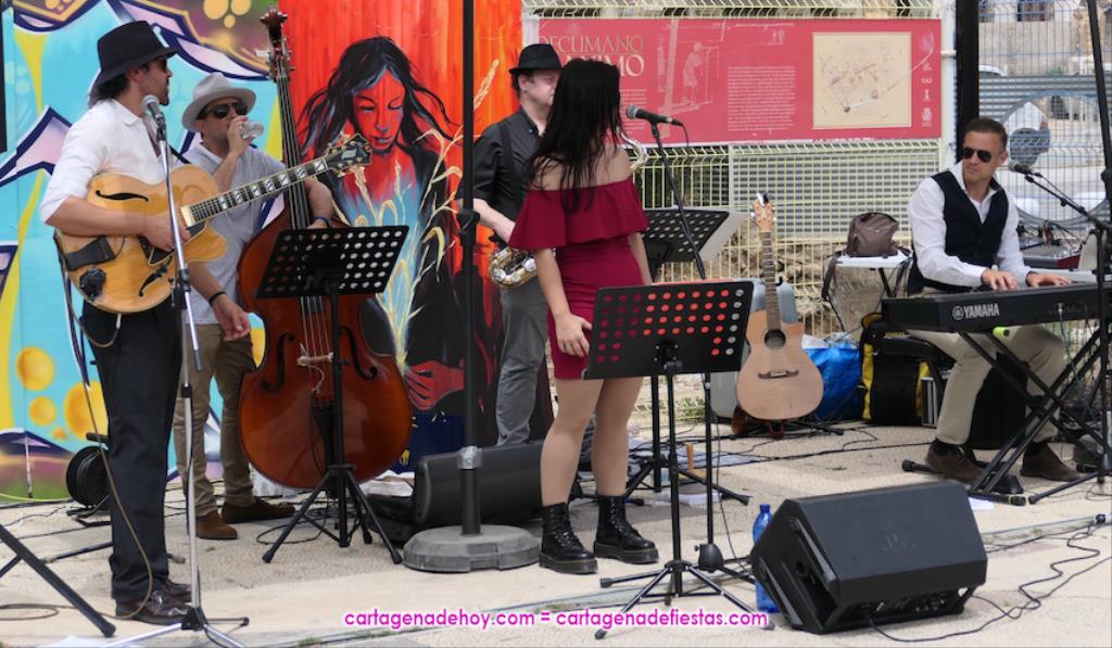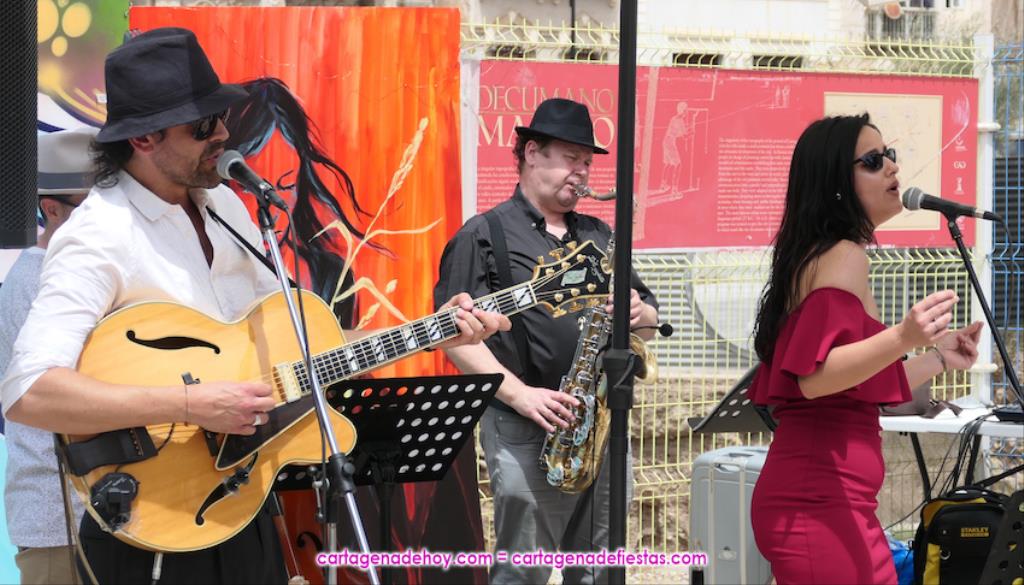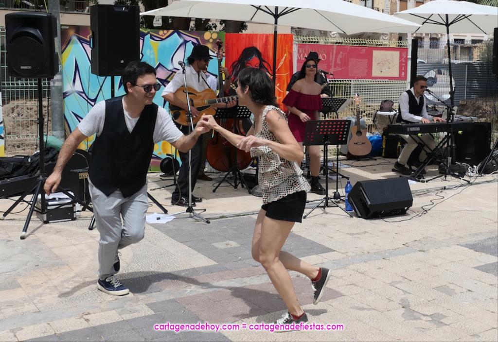 Capítulo importante fue la música con swing jazz y rockabilly. Además del apresencia de un dj, actuaron en directo ‘Mod Swing, ‘King Kriollos’ y el grupo ‘Double Swing’, de San Juan de Terreros (San Miguel de Pulpí), al que corresponden las fotos adjuntas, estando estas actuaciones acompañadas por baile de profesionales con espectadores.