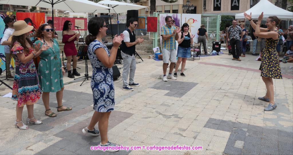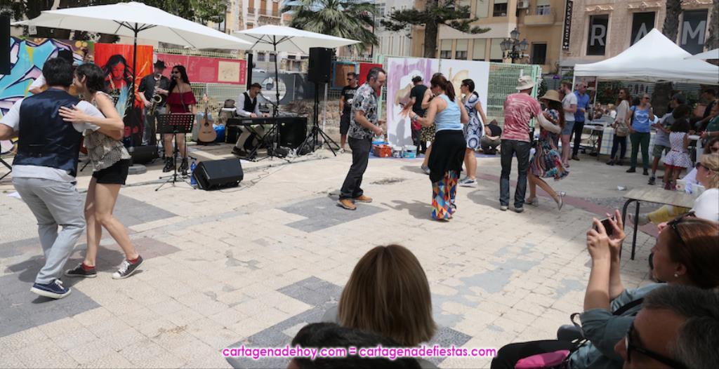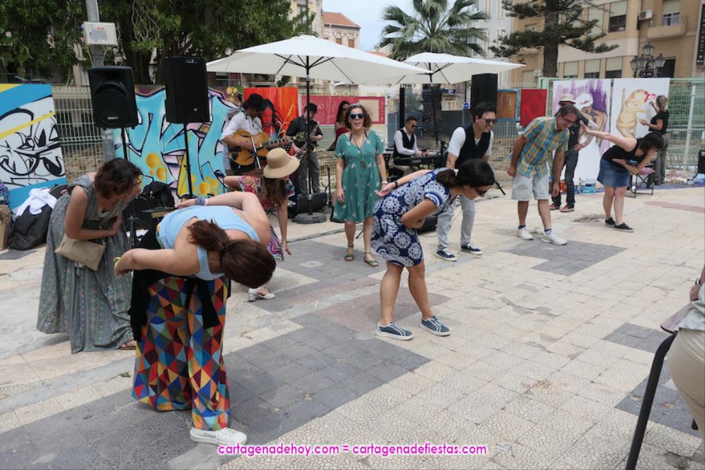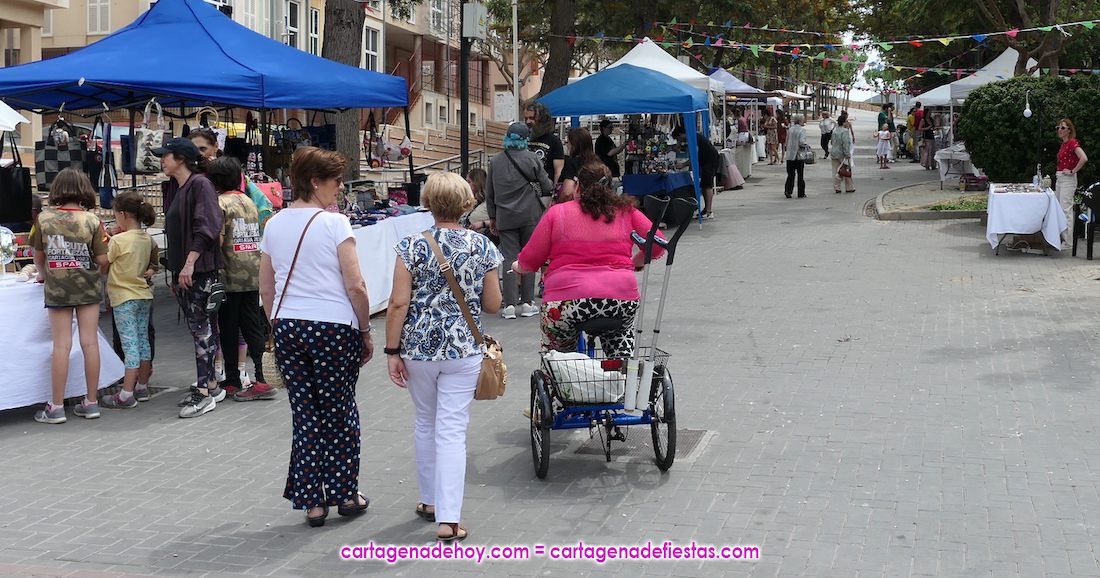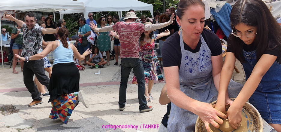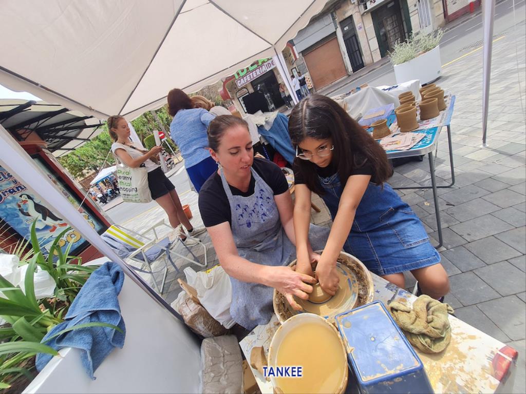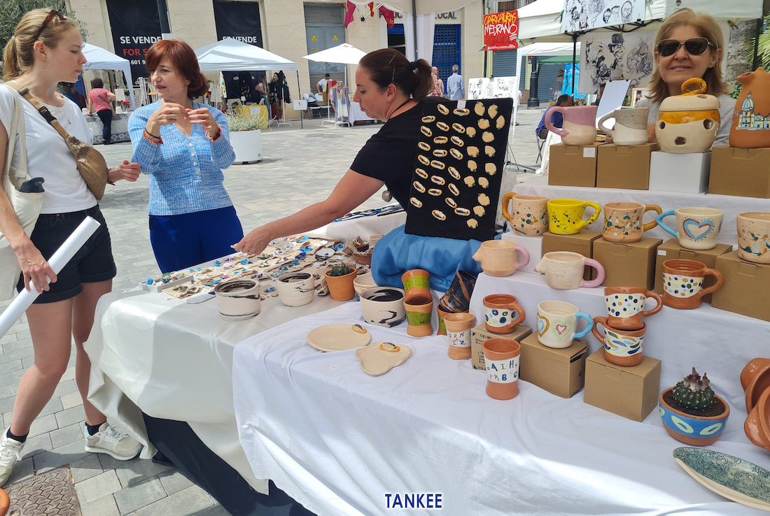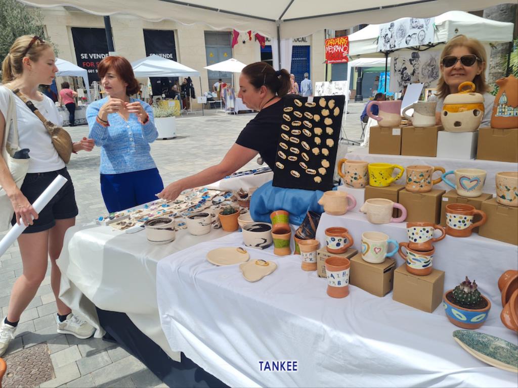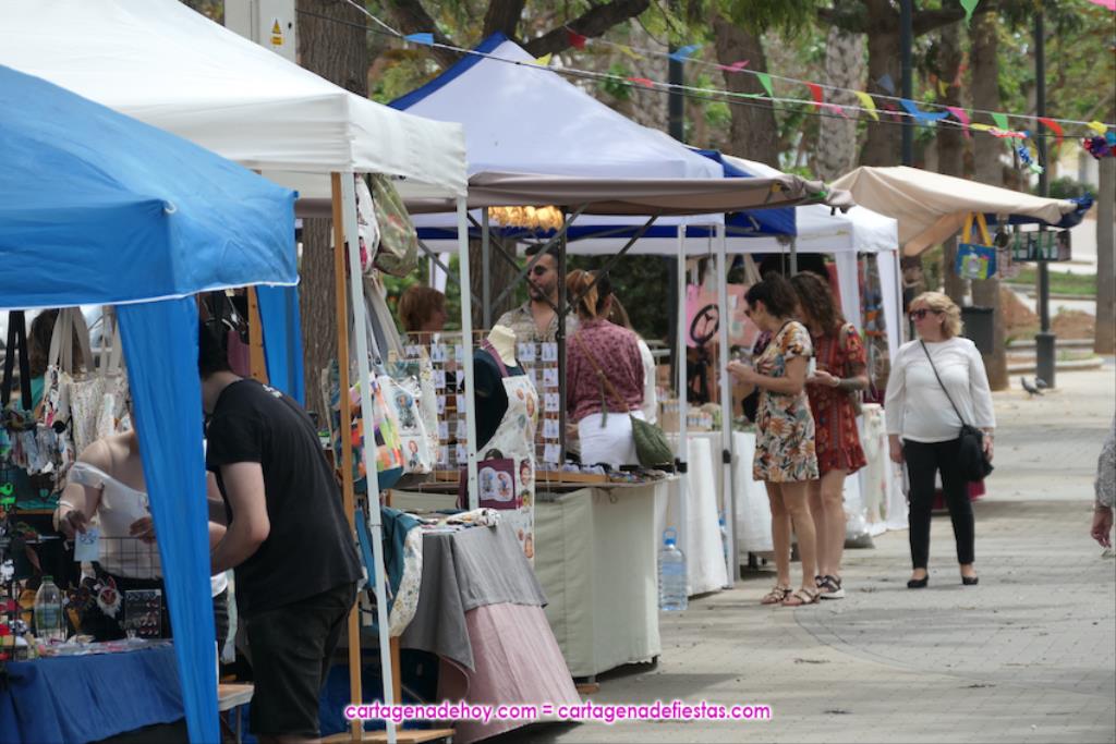 Entre los alicientes, se podía ver elaboración alfarera en el puesto de artesanía de Verónica Maccorín y Lidia Piñero, quienes este mes van a protagonizar la exposición de botijos ‘Boti-Art’ en el Centro de Artesanía de la Región de Murcia, de la calle Honda. Asimismo, estas artistas llevarán a cabo exhibiciones artística en el casco antiguo a partir de las 19 horas en la Noche de los Museos. El arte en vivo en el mercadillo de ‘El Lago’ también se pudo disfrutar con los cinco artistas de ‘La compañía de Mario’ pintando en directo a gran formato y con los talleres de esparto y creativos.