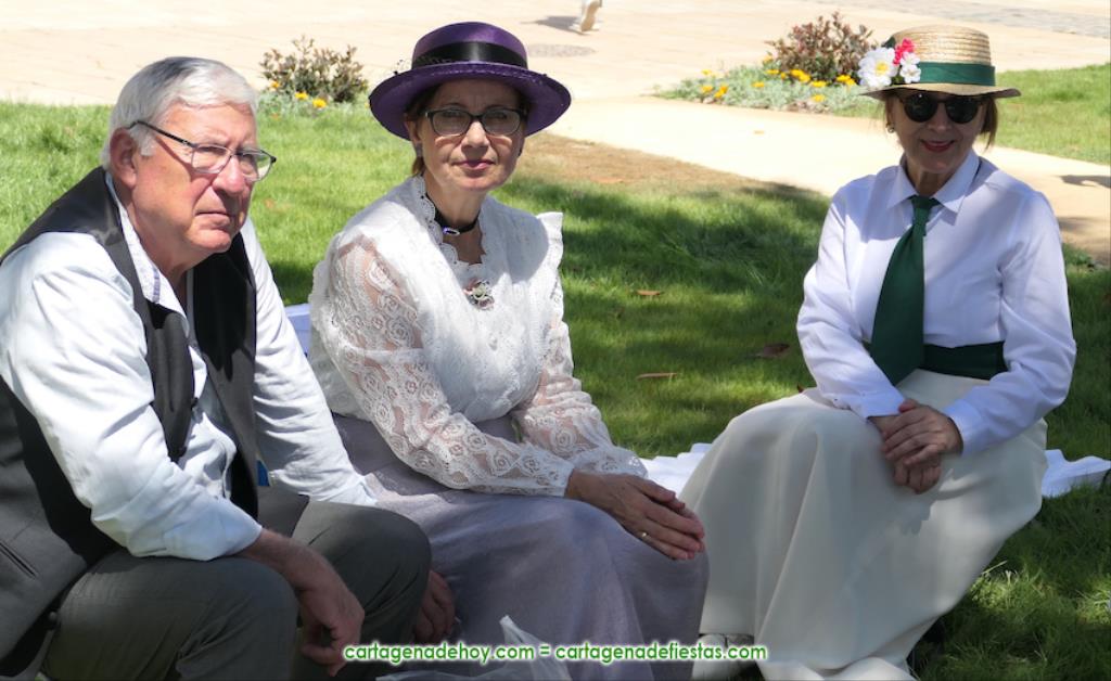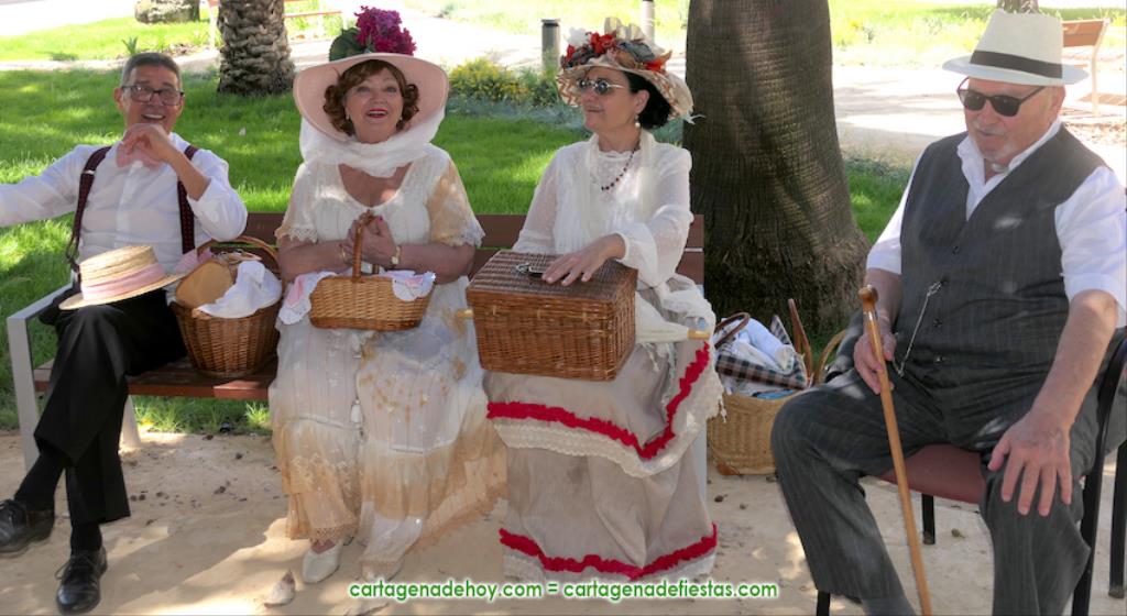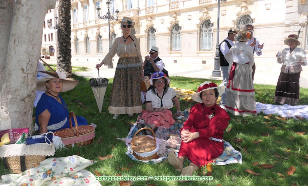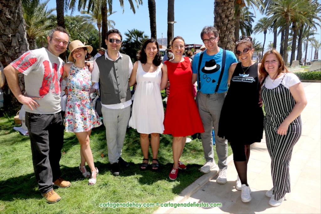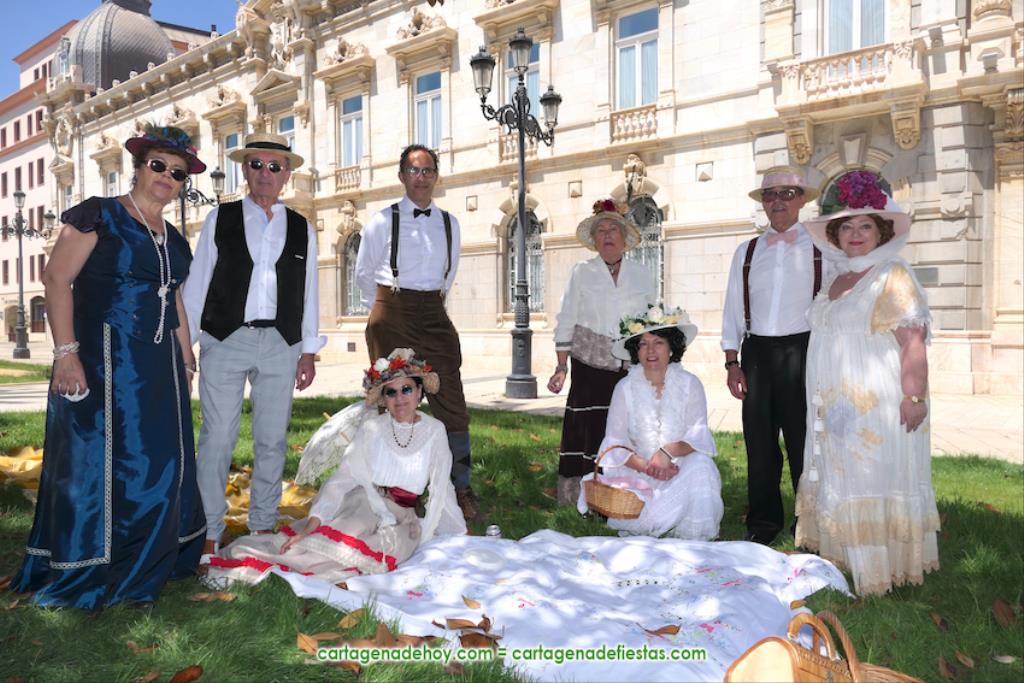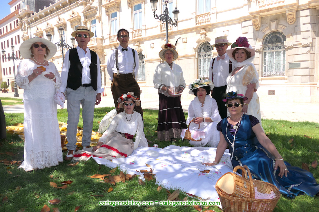 "Ha sido una jornada fantástica y extraordinaria de compañerismo, juegos y bailes. Parece que nos superamos cada edición". Son palabras de José Antonio Martínez 'El Kachimanero', presidente del inquieto colectivo cartagenero, que también disfrutó del picnic junto a unos sesenta modernistas locales más los llegados de Novelda y de Alcoy, quienes se vieron envueltos por la presencia (y miradas) de cientos de cartageneros y turistas.